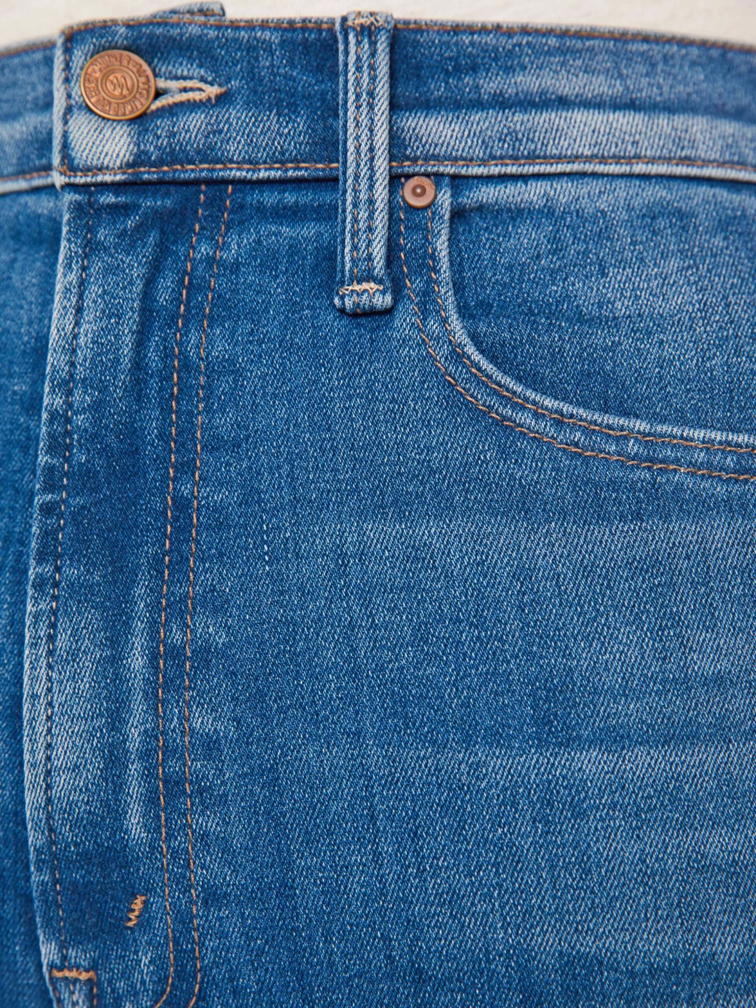 You know hue. This perfect high-waisted straight leg has a 31-inch inseam and a clean hem. Cut from stretch denim, Hue Are You? is a mid-blue wash with whiskering and fading at the knees.