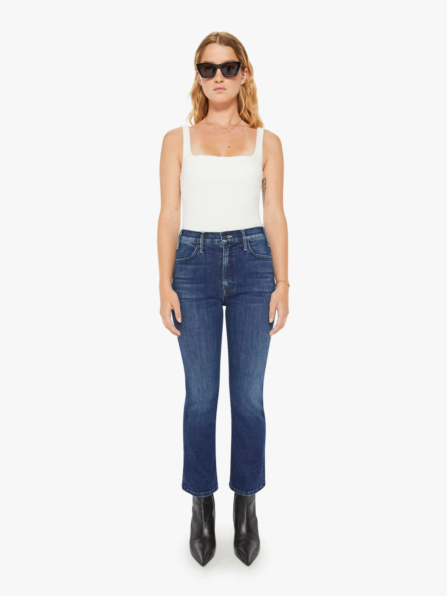 This bestselling high-rise flare has an ankle-length inseam and a clean hem. Cut from denim with a touch of stretch, Heirloom is an dark-blue wash with subtle whiskering and fading.