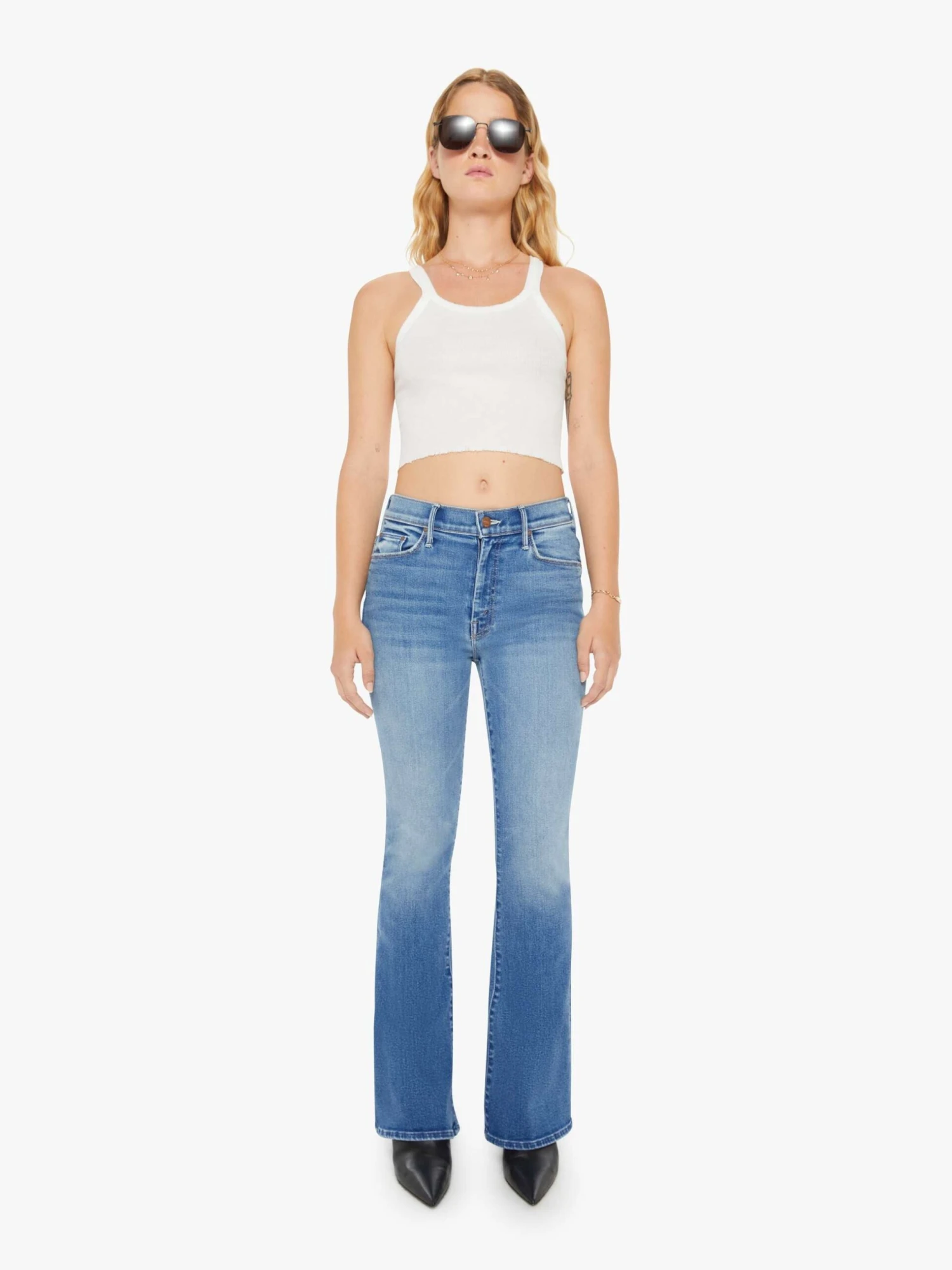 This cult-favorite flare jean has a mid rise with a sneaker-length inseam and a clean hem. Made from denim with a touch of stretch, Layover is a bright mid-blue wash with whiskering and fading throughout. Pairs well with a spotty Wifi connection and airport snacks.
