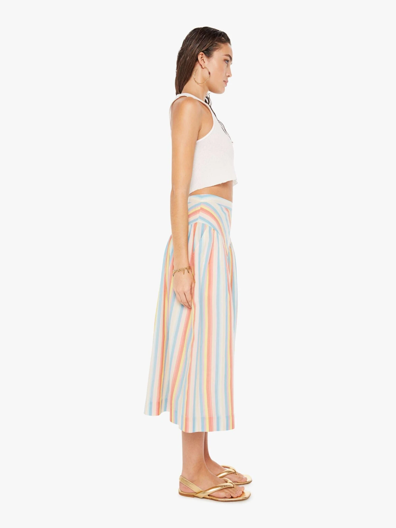 Say cheese. A high-rise midi skirt with a V-shaped panel at the waist, slit pockets and ruffles throughout for a loose, flowy fit. Made from 100% cotton, Picture Perfect is a pastel stripe pattern.