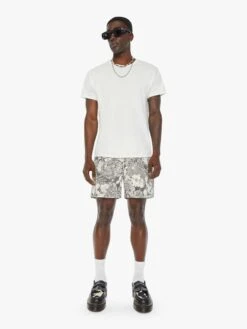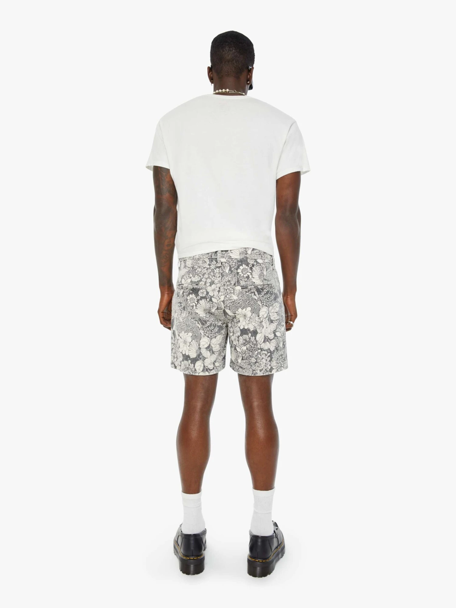 Once upon a time. Mid-rise shorts with a loose leg, slit pockets and a clean hem that hits mid-thigh. Made from cotton with a touch of stretch, French Fairy Tale is a faded black and white floral print.