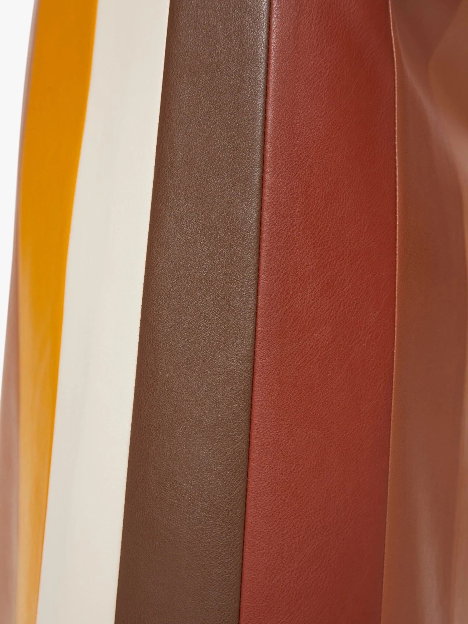 Hiss you were here. A colorblocked midi skirt with a high rise, loose fit and a calf-grazing hem. Cut from buttery-soft faux leather, The Bits And Pieces Skirt in Slippery As A Snake is designed in warm shades of brown, yellow and cream.