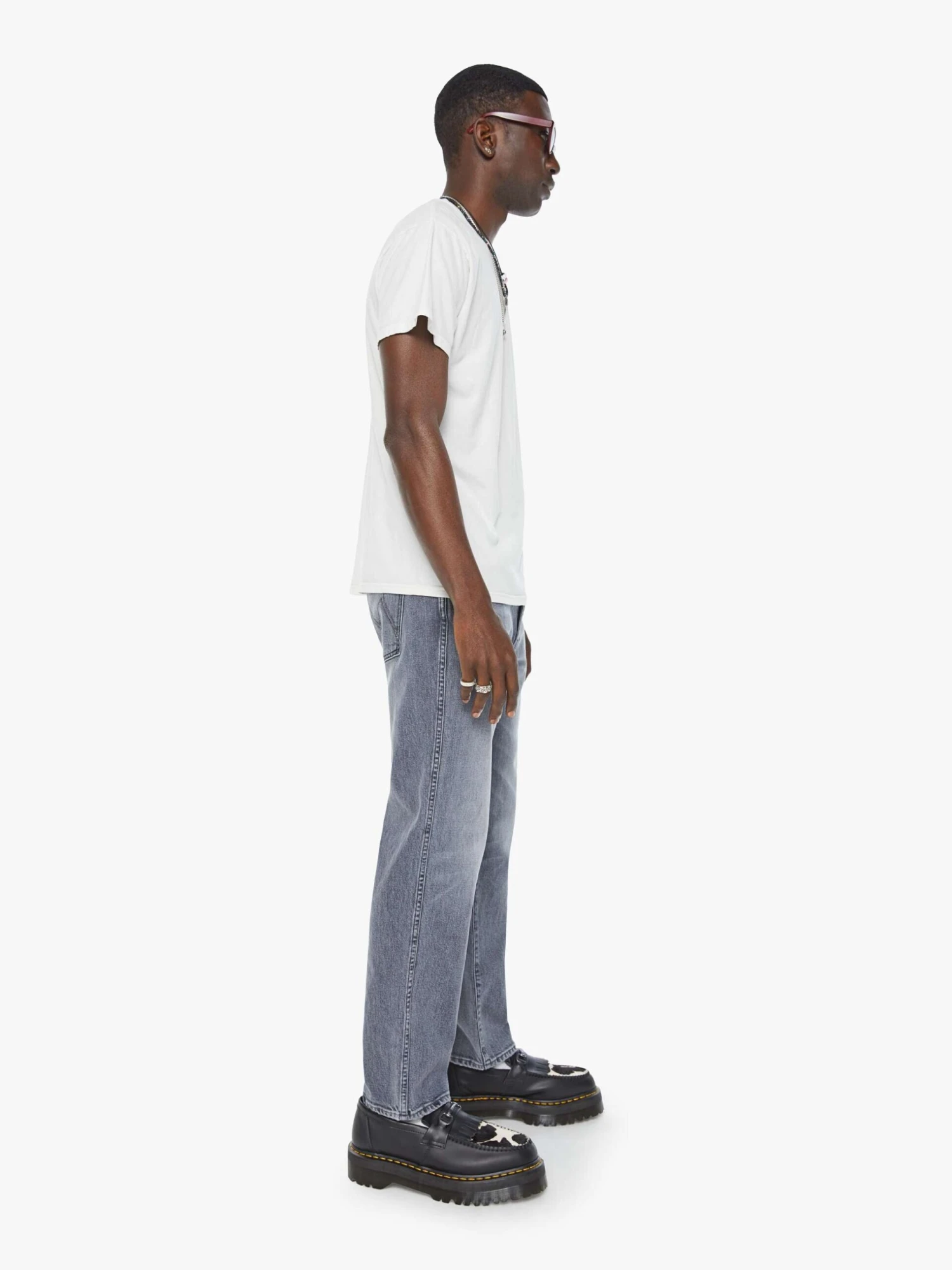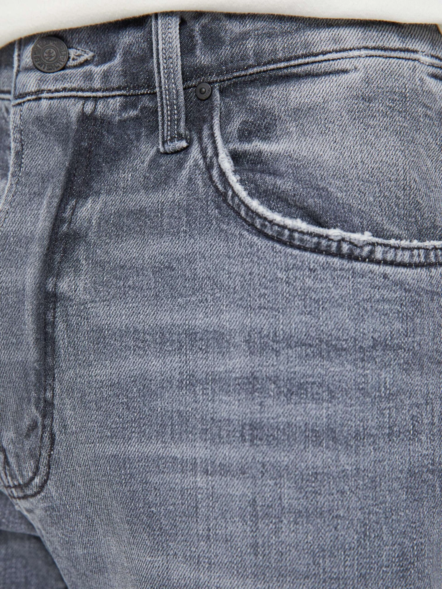 Rough around the edges. A straight-leg jean with a mid rise, ankle-length inseam and a clean hem. Made from denim with a touch of stretch, 5 O’clock Shadow is a dark-grey wash with whiskering and fading at the knees.