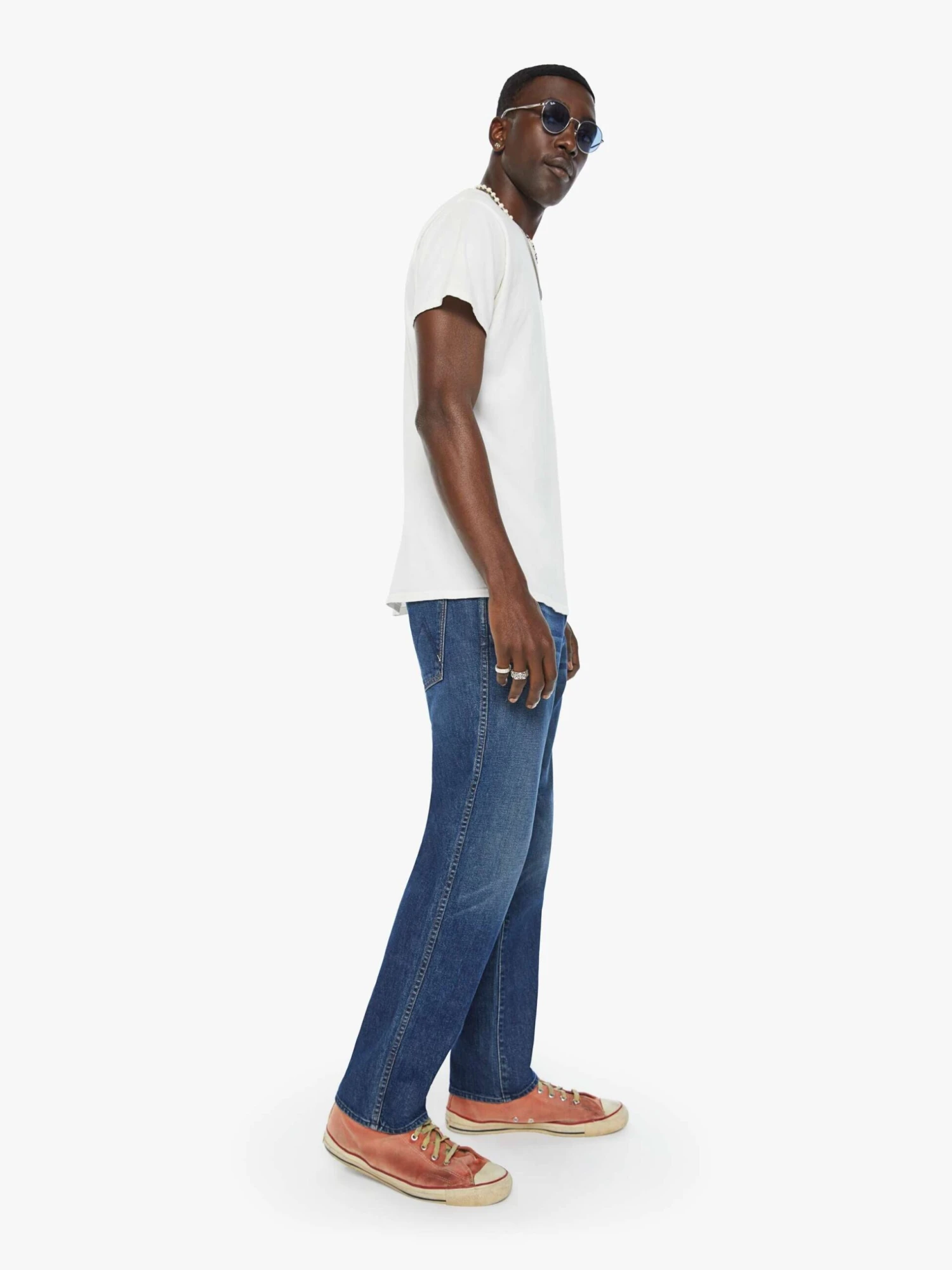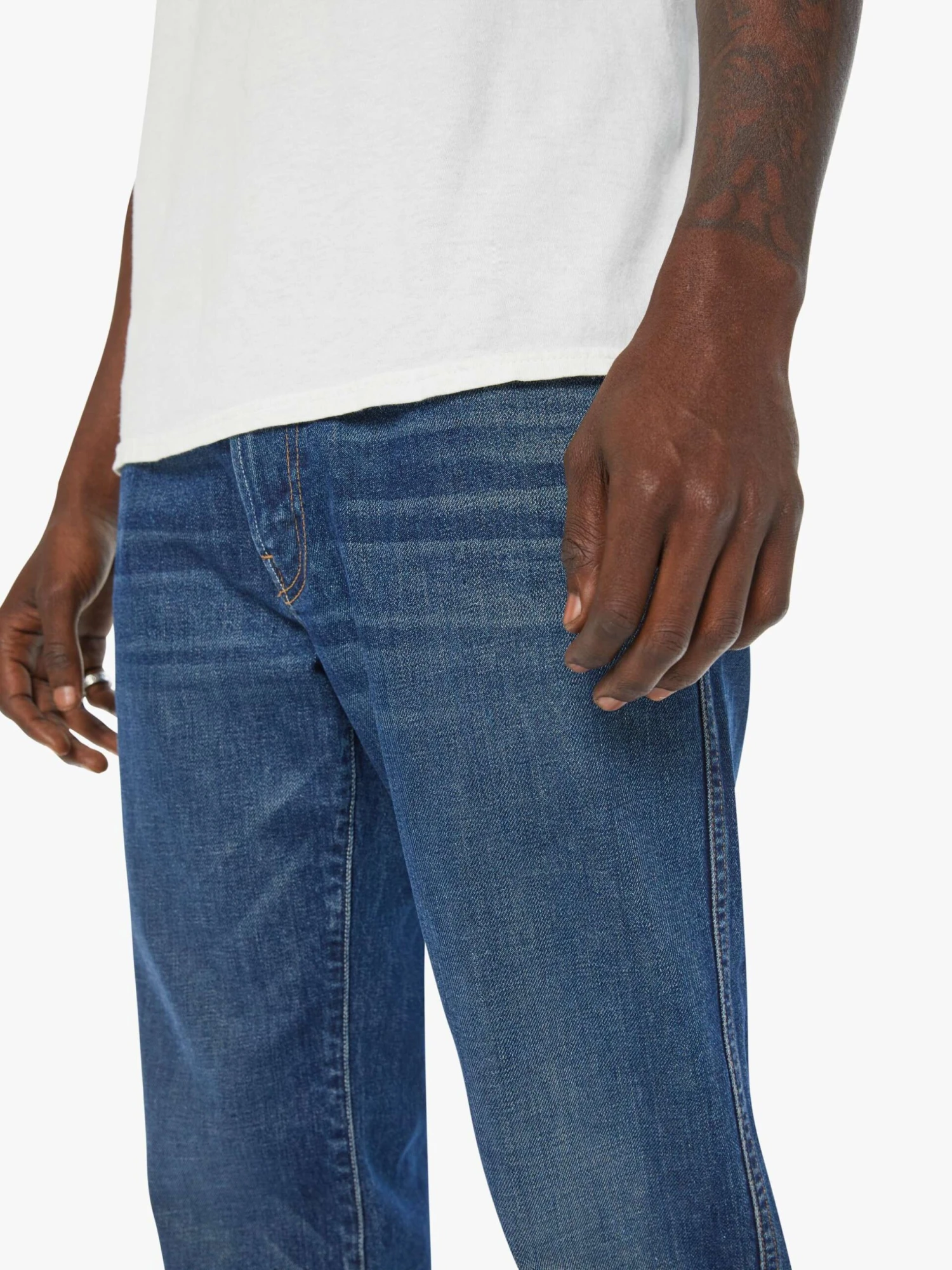 Pump your brakes. A straight-leg jean with a mid rise, ankle-length inseam and a clean hem. Made from denim with a touch of stretch, In The Driver’s Seat is a dark blue wash with whiskering and fading at the knee.
