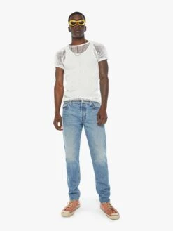 Let’s skip to the good part. The Chaser is a mid-rise straight leg with a 32-inch inseam and a clean hem. Made from 100% cotton denim, Cut To The Chase is a mid-blue wash with whiskering and fading throughout.