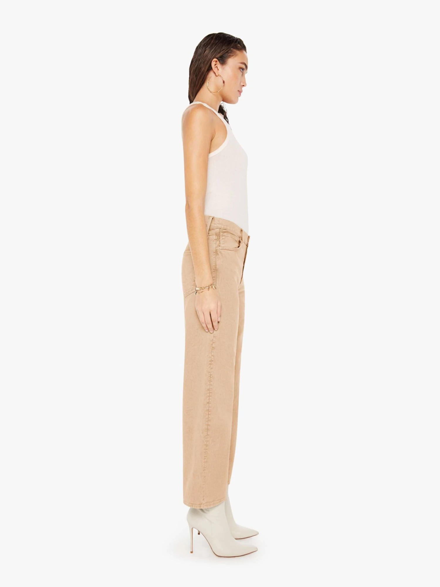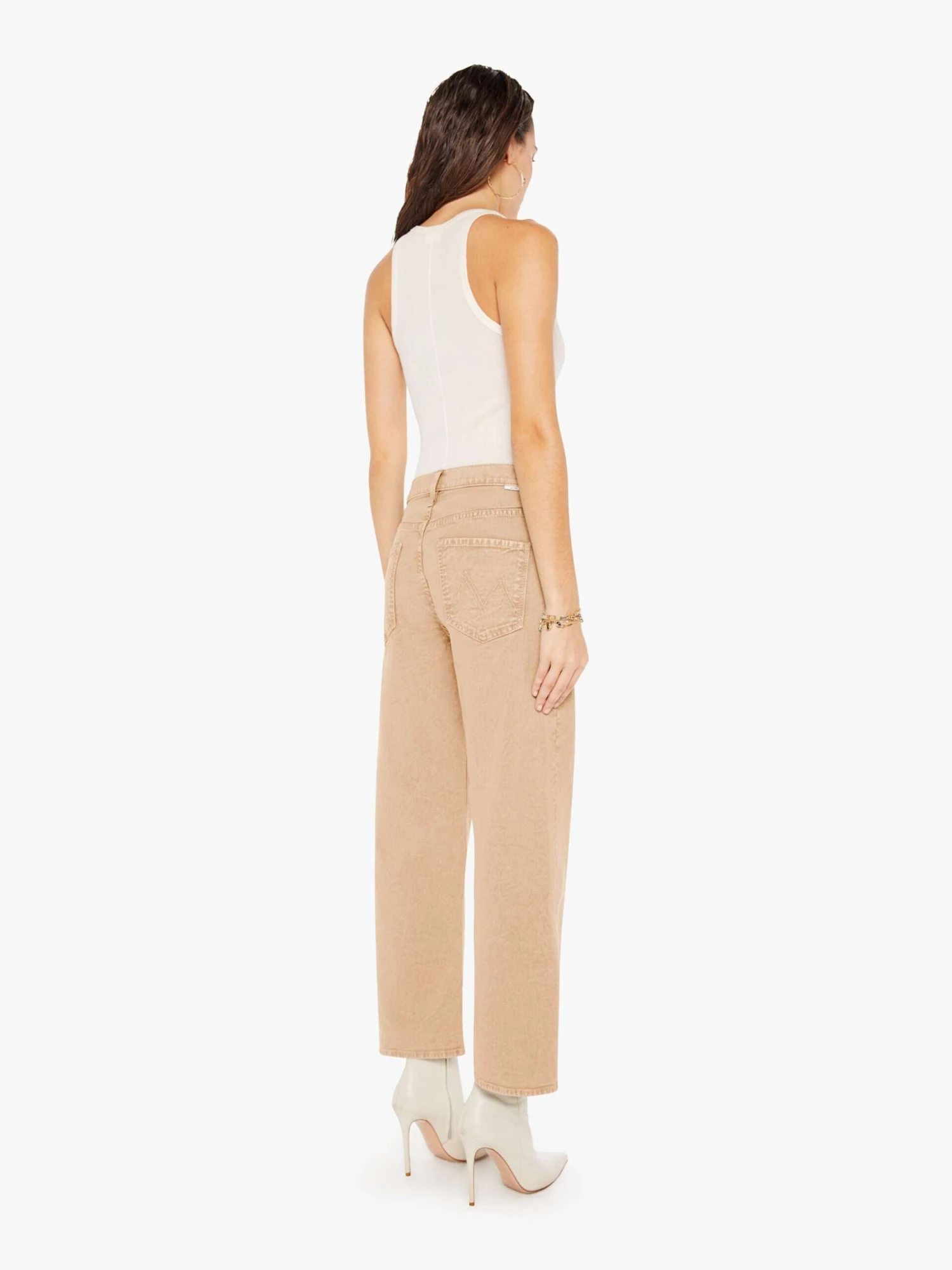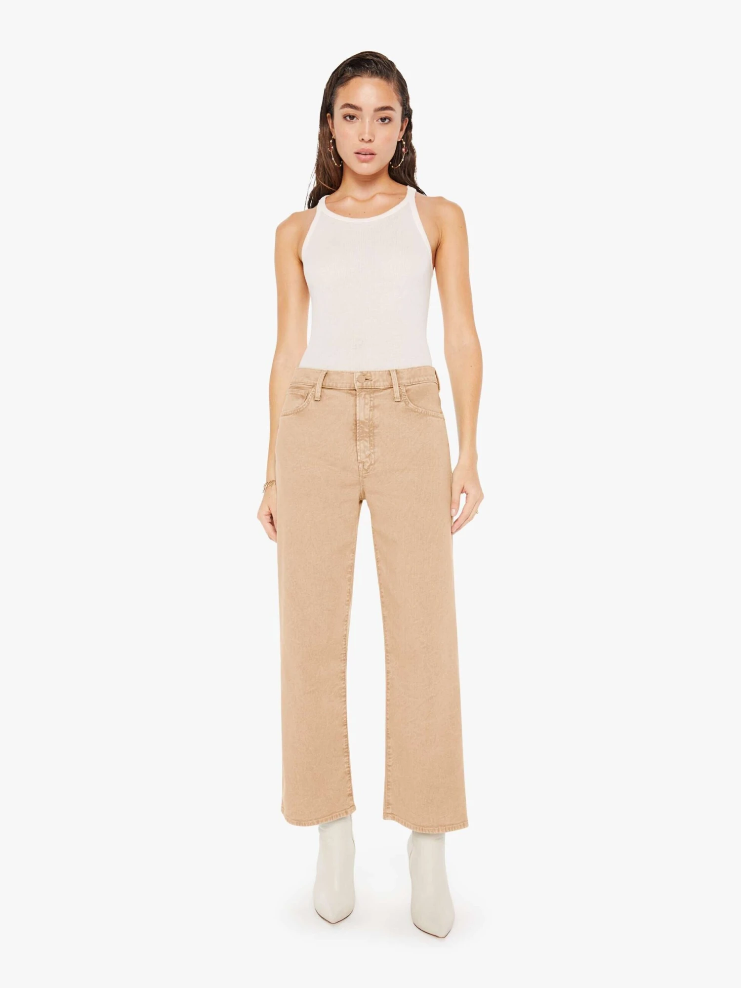 Pants designed to sit lower on the hips with a loose straight leg and a clean ankle-length inseam. Made from a cotton blend with a touch of stretch, the pants are designed in a slightly acid-washed khaki.