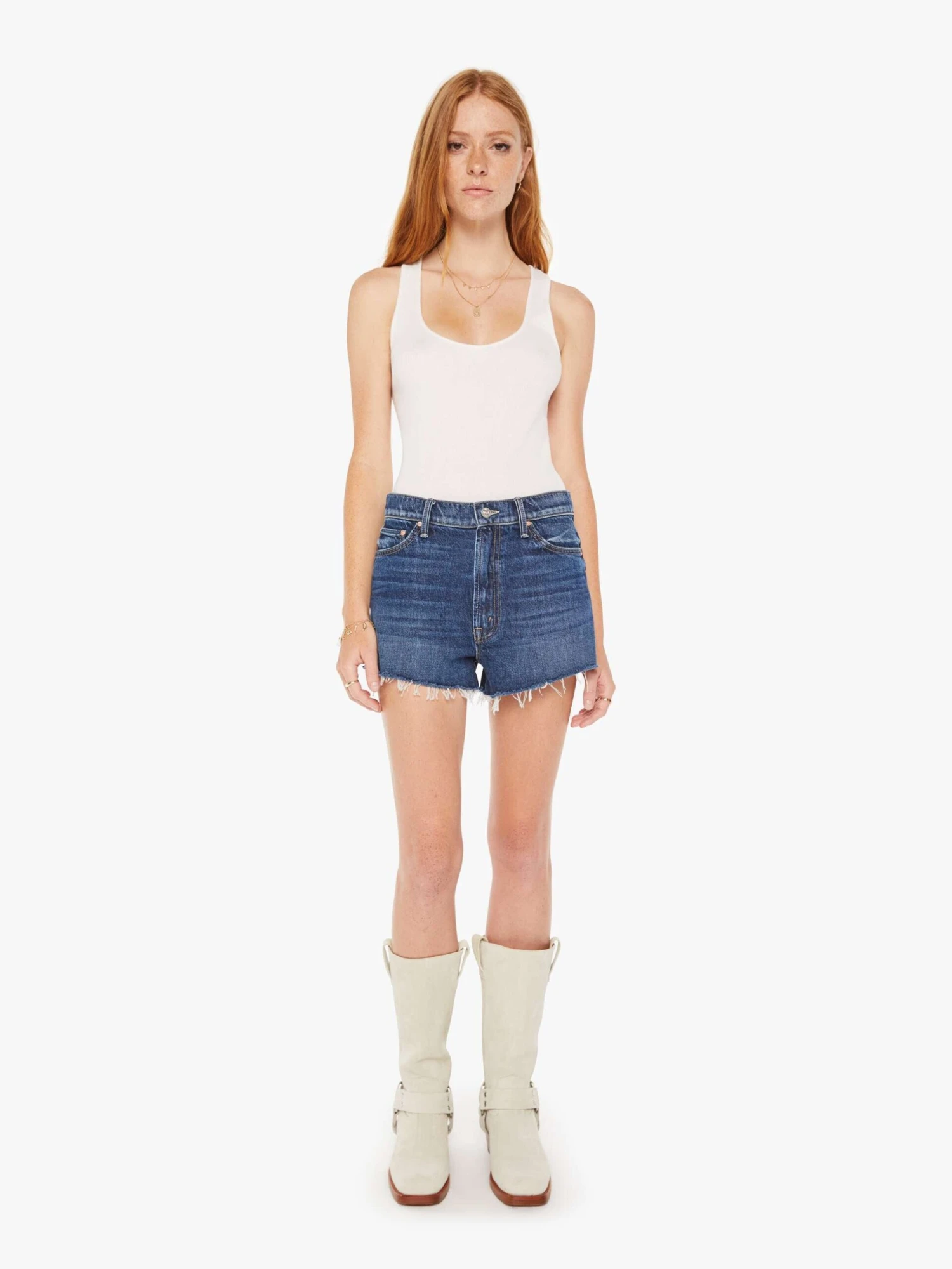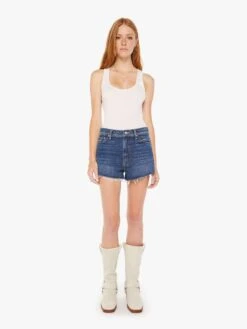 High hopes. Denim shorts designed to sit lower on the hips with a slouchy fit and a frayed hem. Made from SUPERIOR 100% cotton denim, Did You Bring Me Anything? is a dark blue wash with subtle fading throughout. A girl can dream.