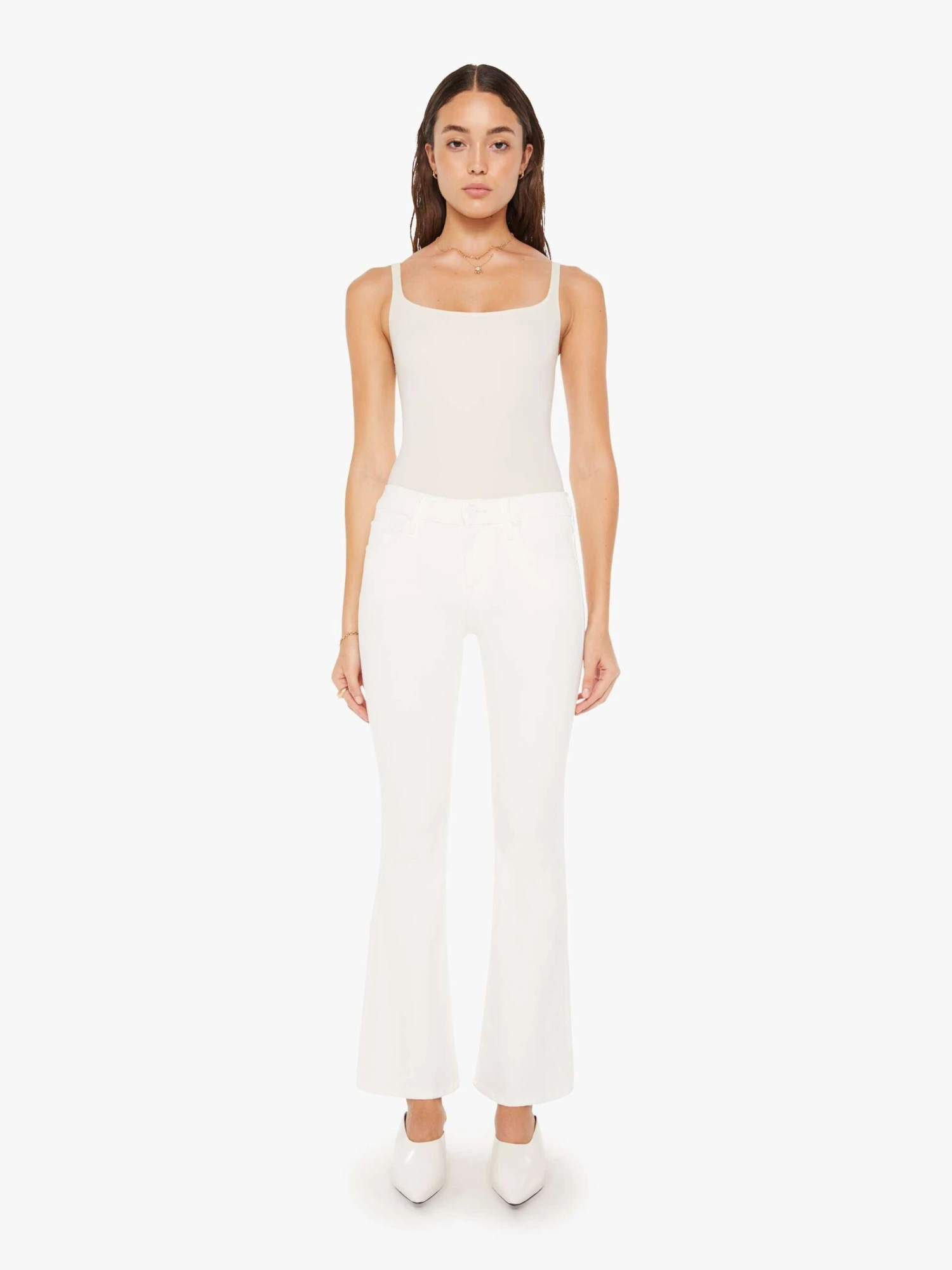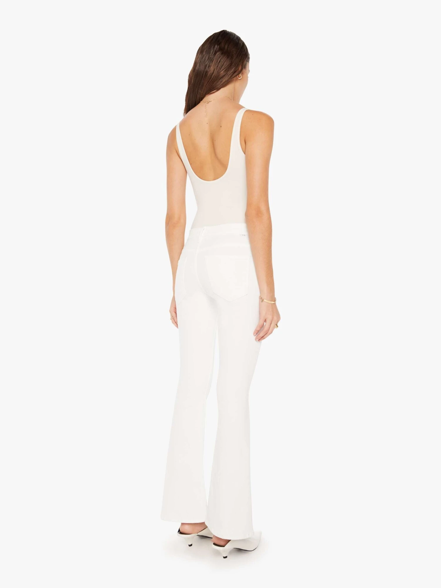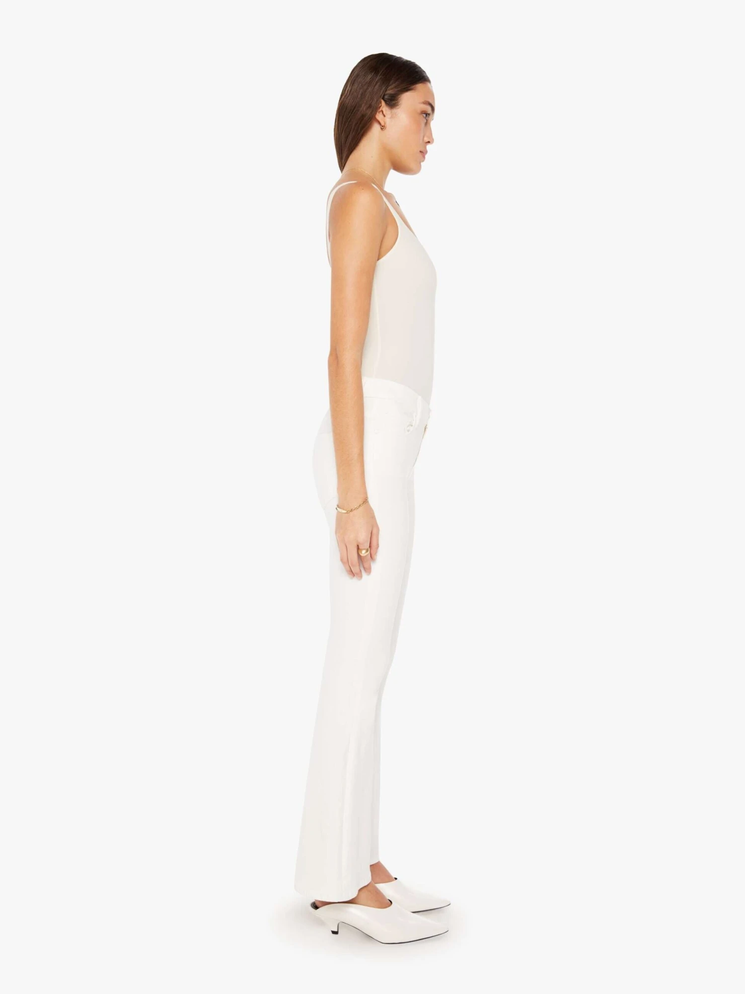 Mirror, mirror. These super low-rise flares have a 31-inch inseam and a clean hem. Made from stretch fabric, Fairest Of Them All is our bestselling white denim.