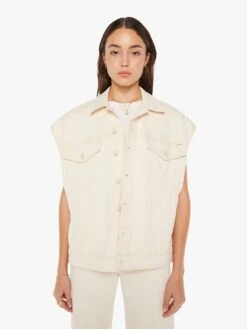 Au naturel. An oversized vest with extra-wide shoulders, patch pockets and a super boxy fit. Cut from a SUPERIOR cotton blend with a touch of stretch, Act Natural is a creamy white hue with tonal hardware.