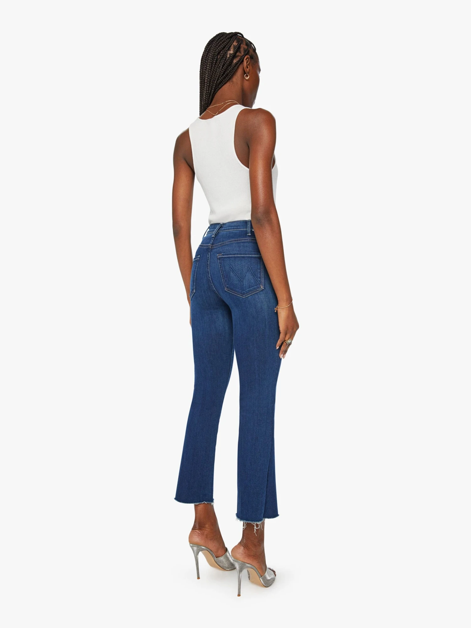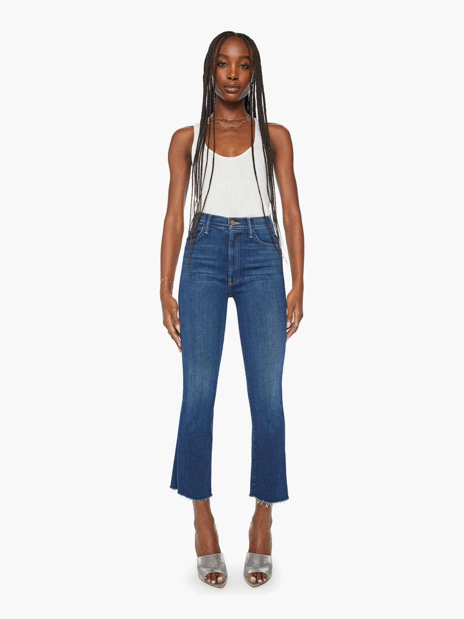 Get your popcorn. This bestselling high-rise flare has an ankle-length inseam and a raw hem. Cut from stretch denim, Home Movies is a medium blue wash with subtle fading and whiskering.