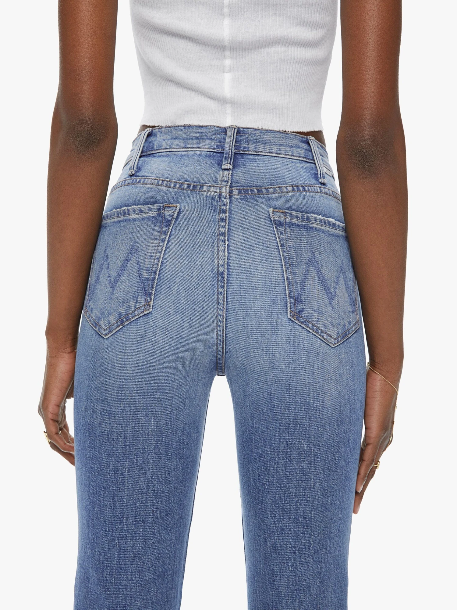 Honk for MOTHER nature. This high-rise flare has an ankle-length inseam and a clean hem. Cut from semi-rigid denim, Scenic Route is a mid-blue wash with whiskering, fading and distressed details.