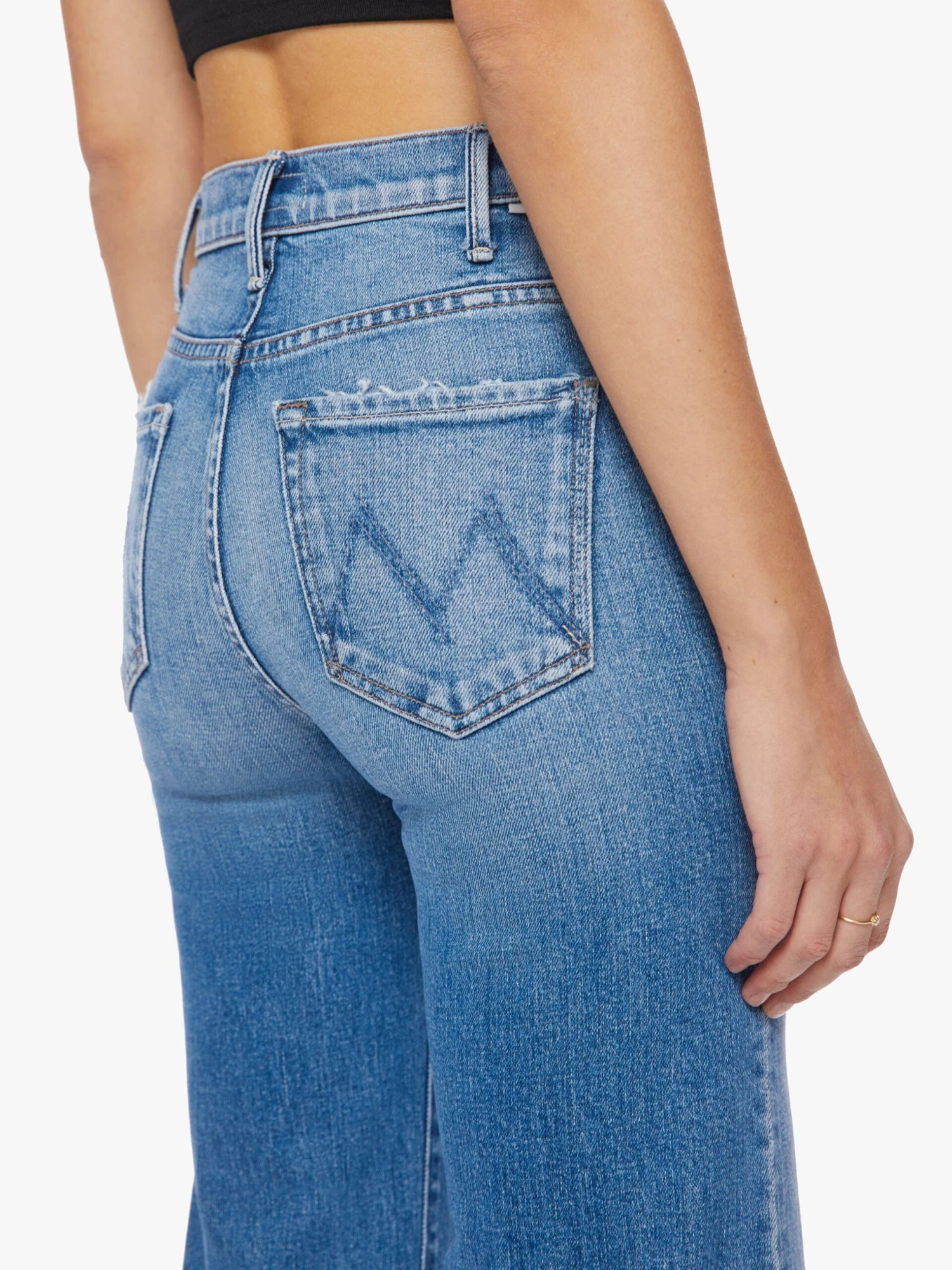 70s-inspired wide-leg jeans with a high rise, ankle-length inseam and a clean hem. Cut from denim with a touch of stretch, High On The Hog is a mid blue wash with fading a whiskering.