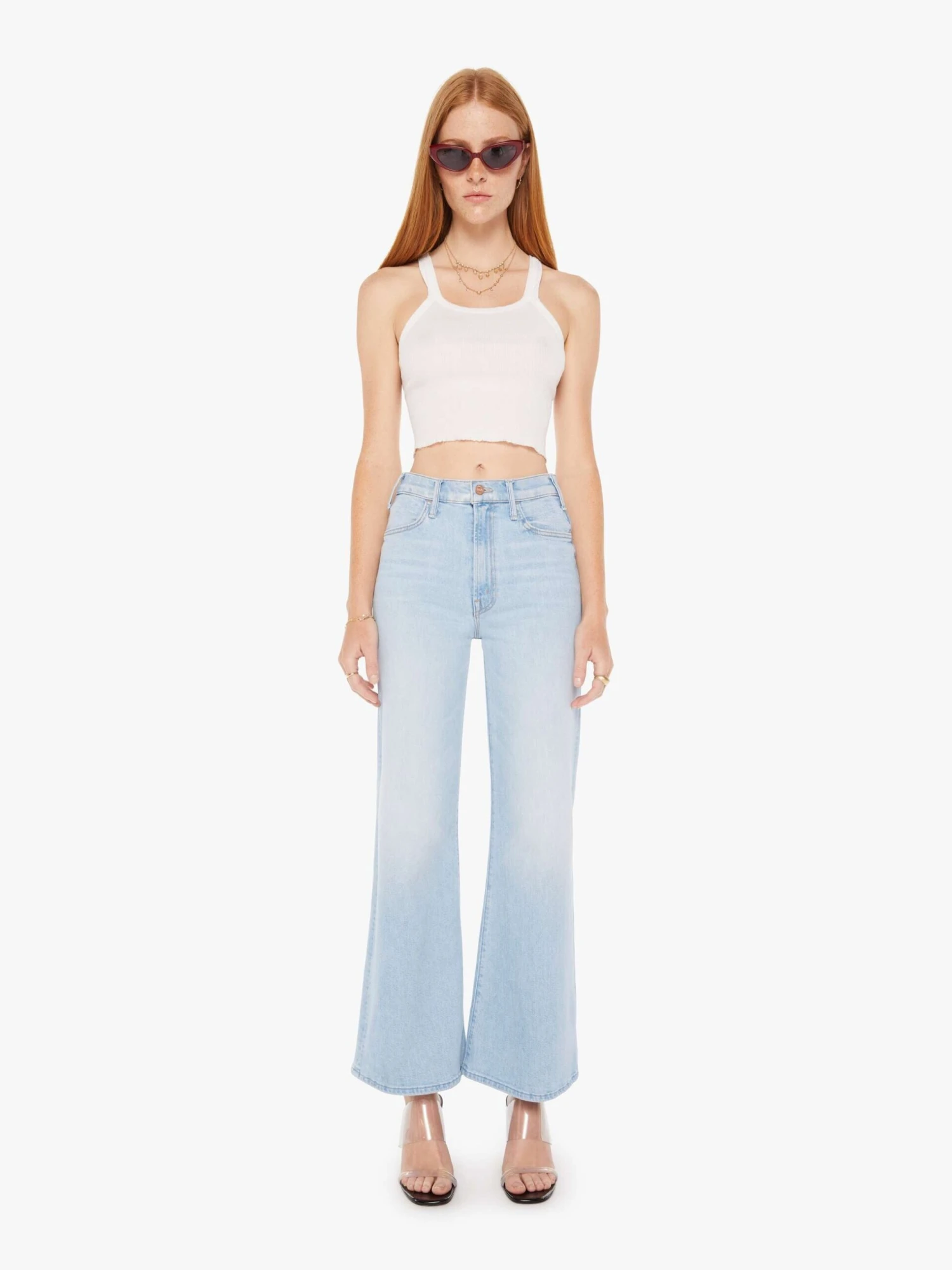 Isn’t that darling. 70s-inspired wide leg jeans with a high rise, 29.25-inch inseam and a clean hem. Cut from a blend of recycled denim with a touch of stretch, Cherie Cherie is a light blue wash with whiskering and fading.