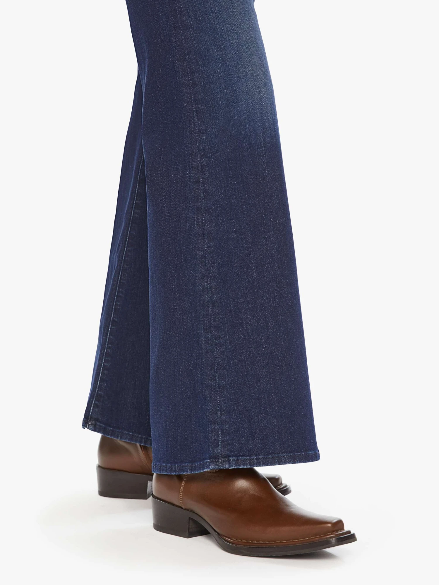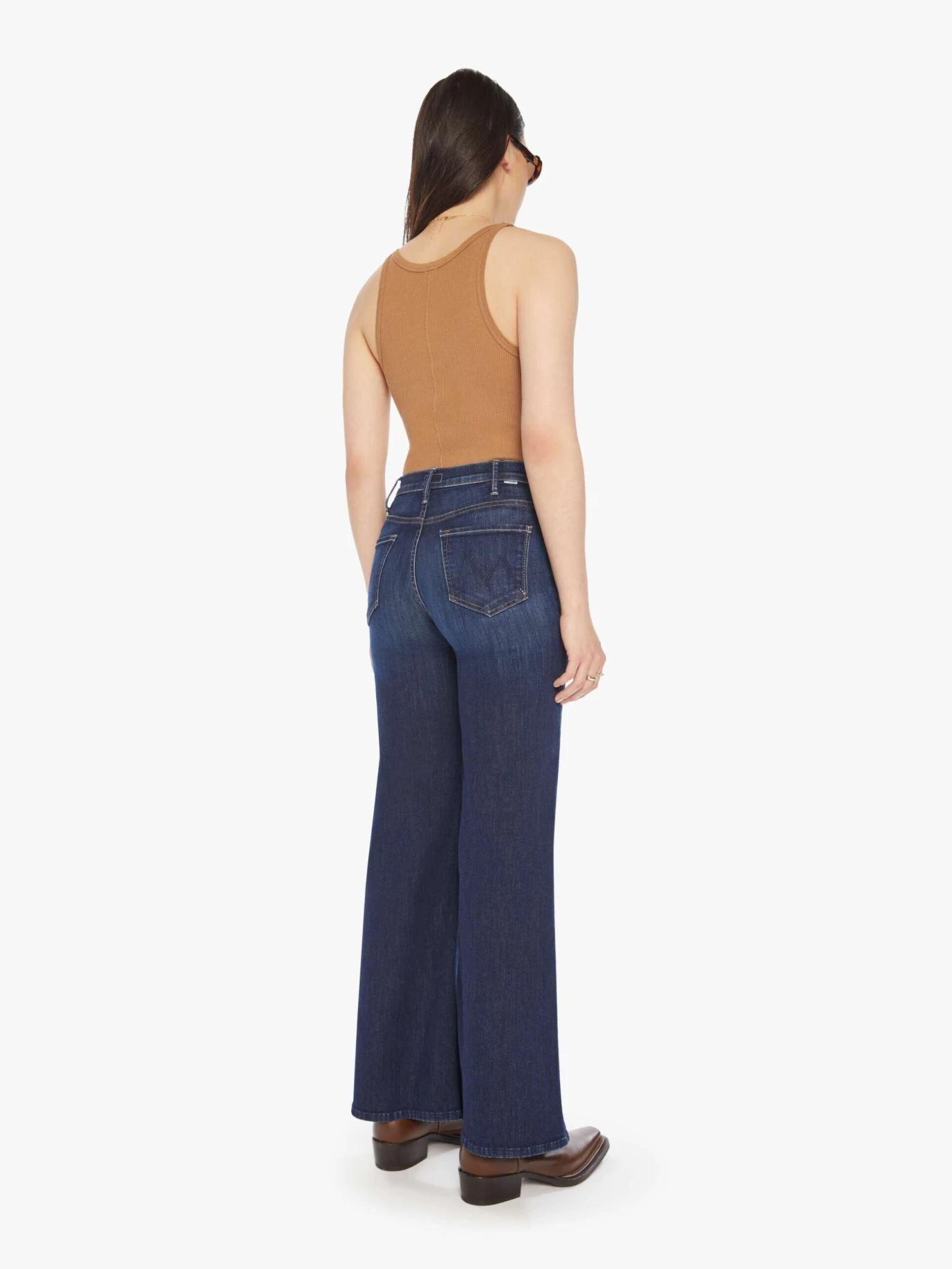 Out of your league. 70s-inspired wide leg jeans with a high rise, 32-inch inseam and a clean hem. Cut from denim with a touch of stretch, Off Limits is a dark-blue wash with subtle fading and whiskering.