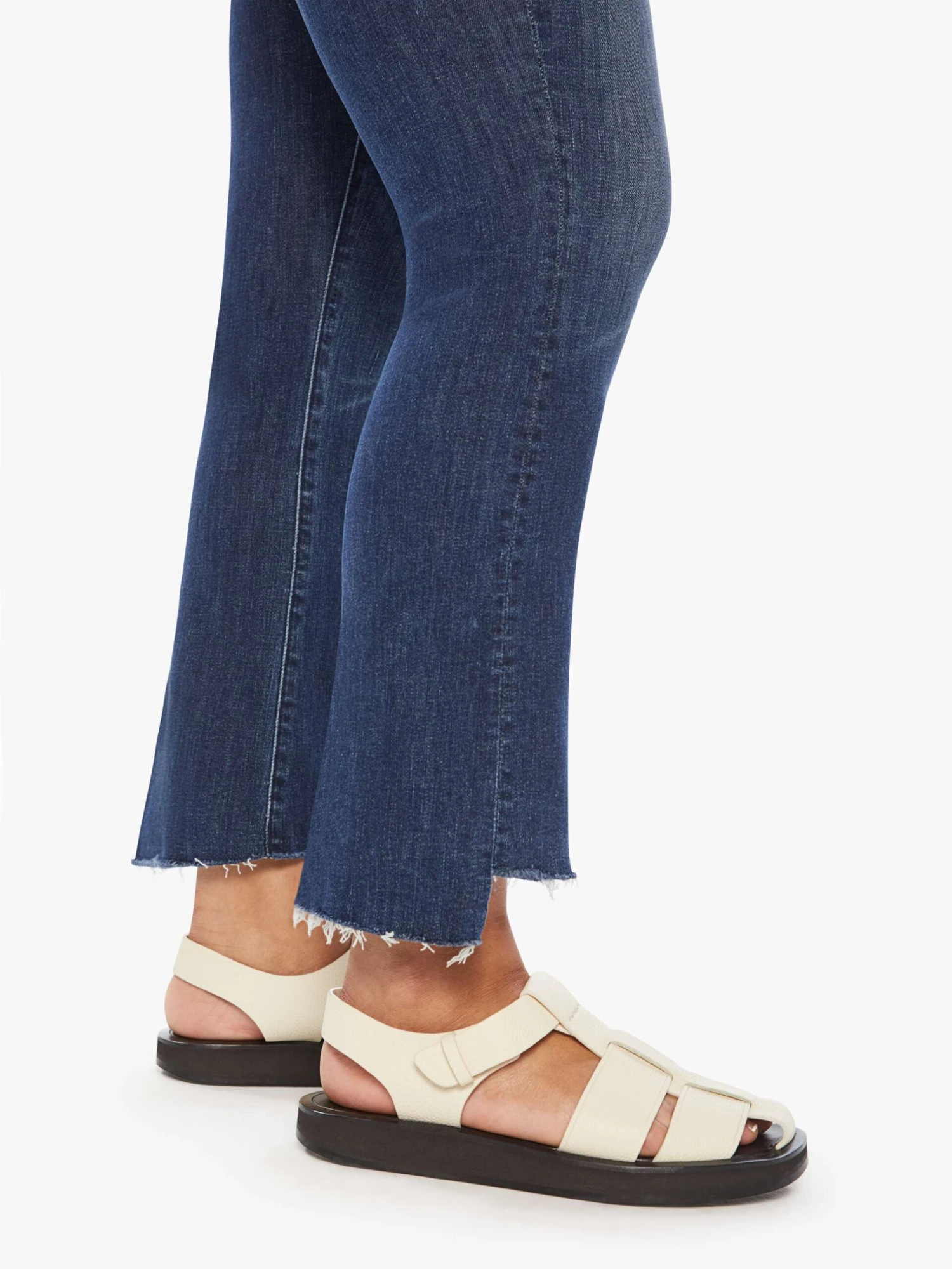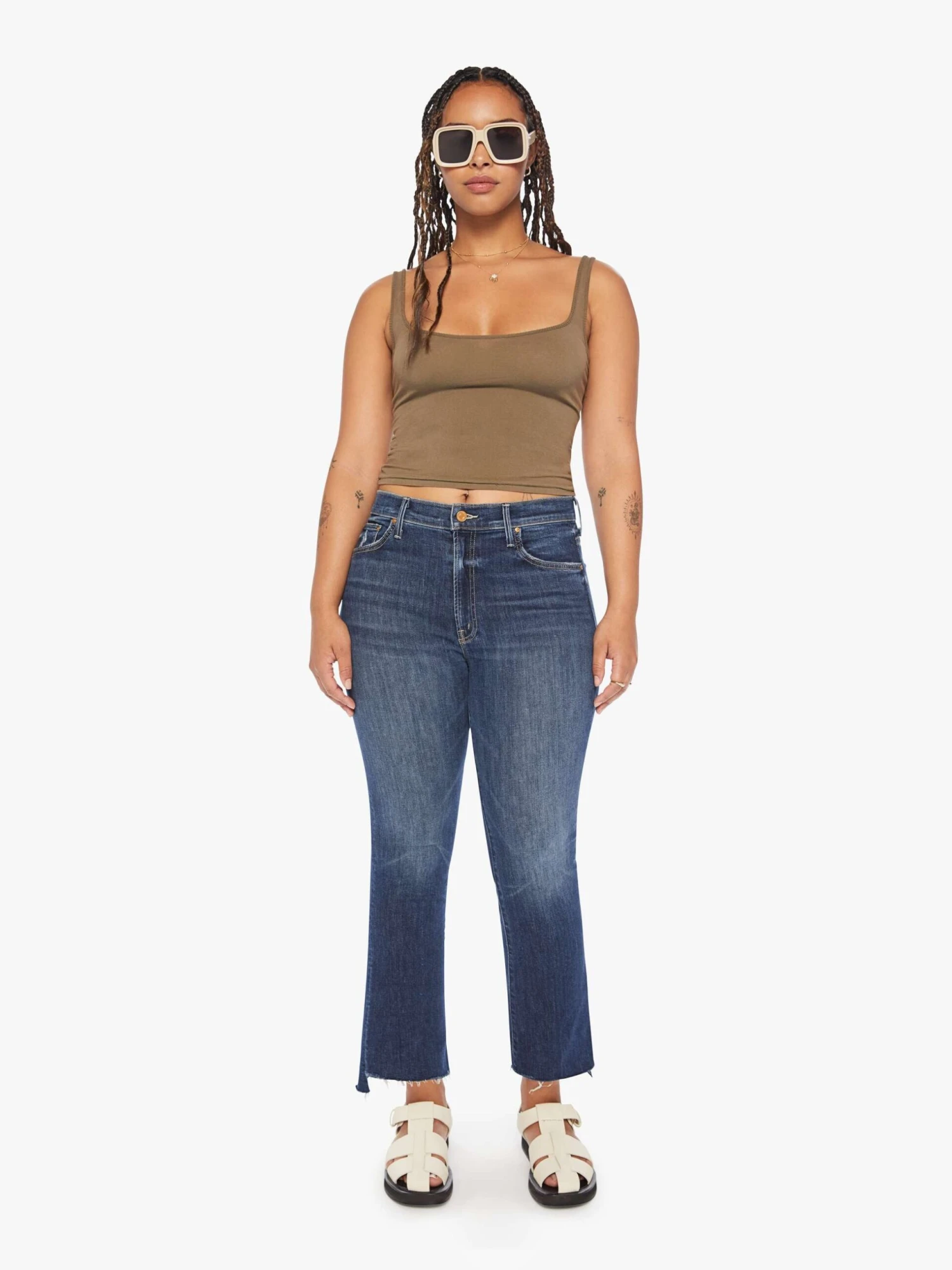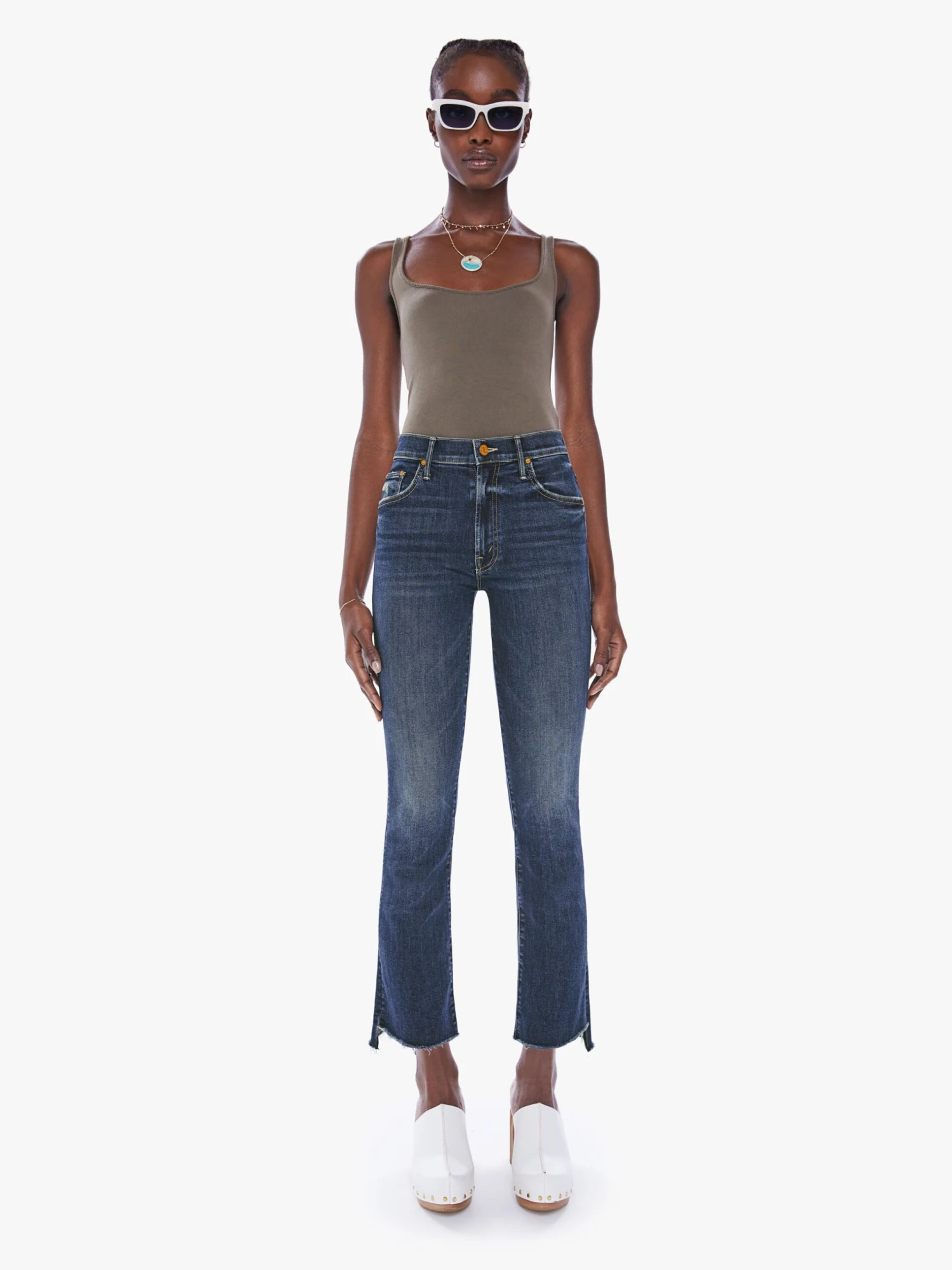 Take one for the team. This iconic high-waisted bootcut hits at the ankle with a step frayed hem. Cut from soft stretch denim, Teaming Up is a dark blue wash with subtle fading and whiskering.