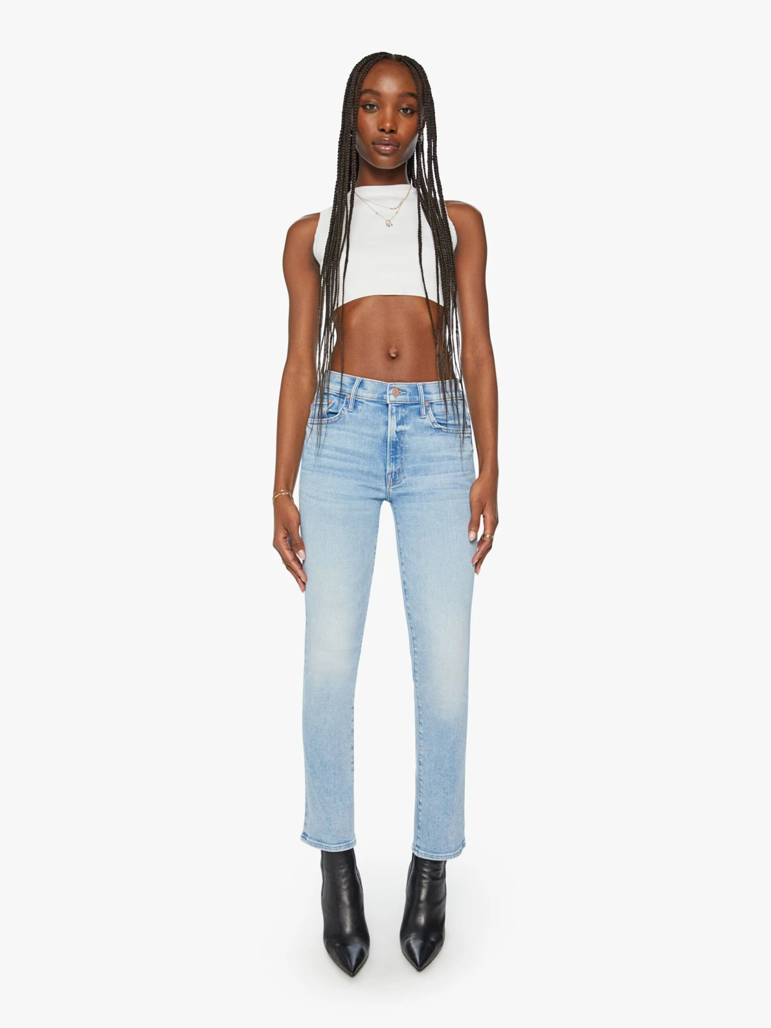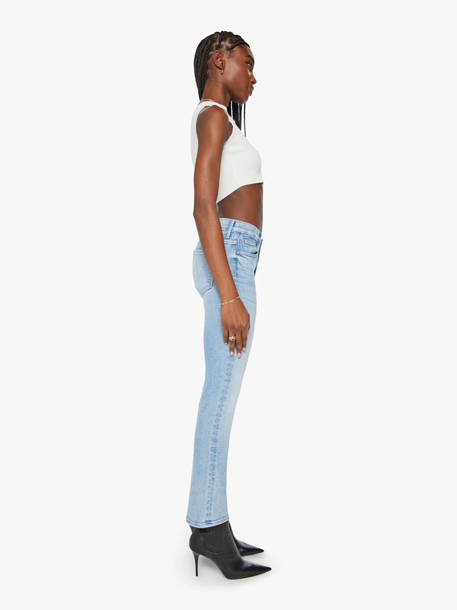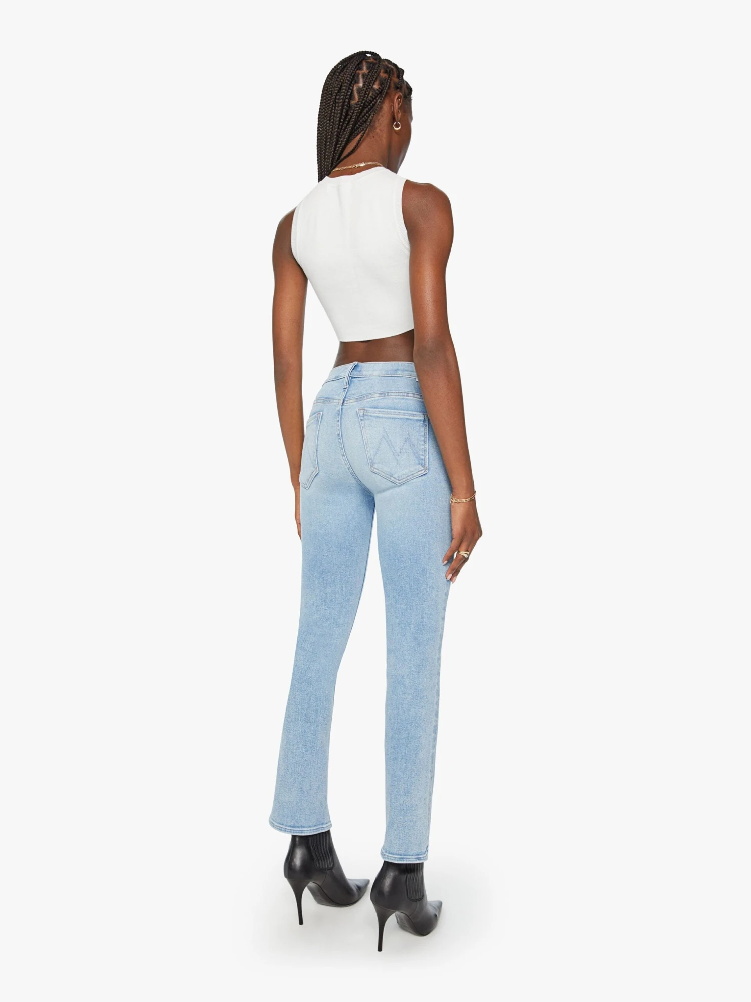 Matcha made in heaven. This iconic mid-rise bootcut has a 29.25-inch inseam and a clean hem. Made from stretch denim, Tea Time is a light blue wash with whiskering and fading at the knee.