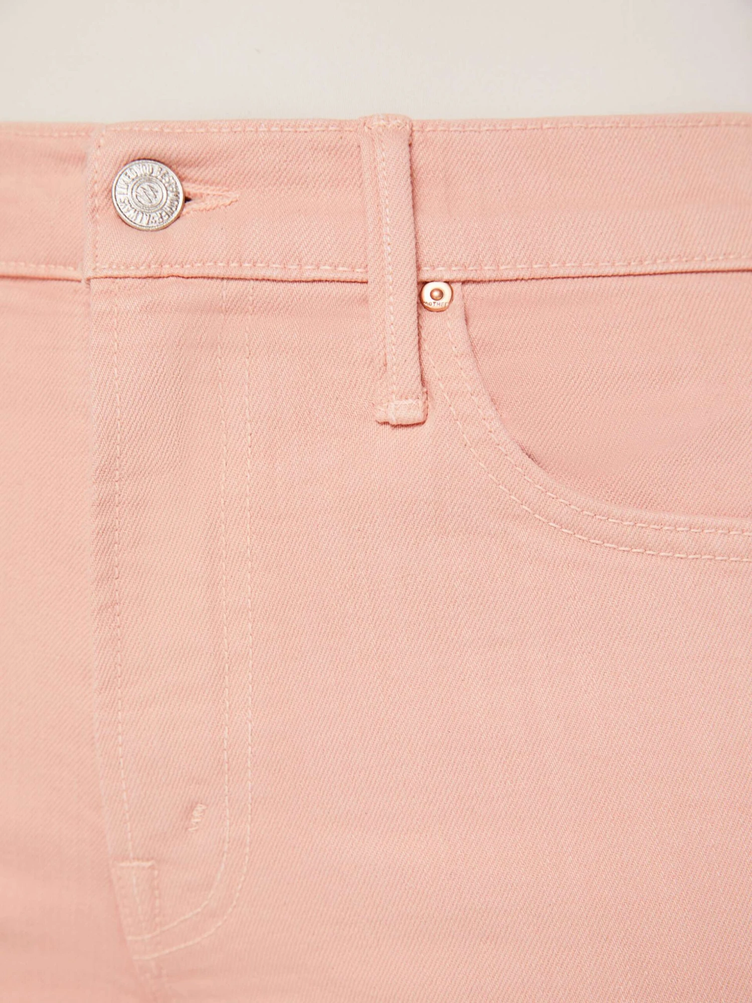Peachy. This high-rise bootcut has a 29-inch inseam and a clean hem. Made from cotton with a touch of stretch, Peach Parfait is a faded baby pink.