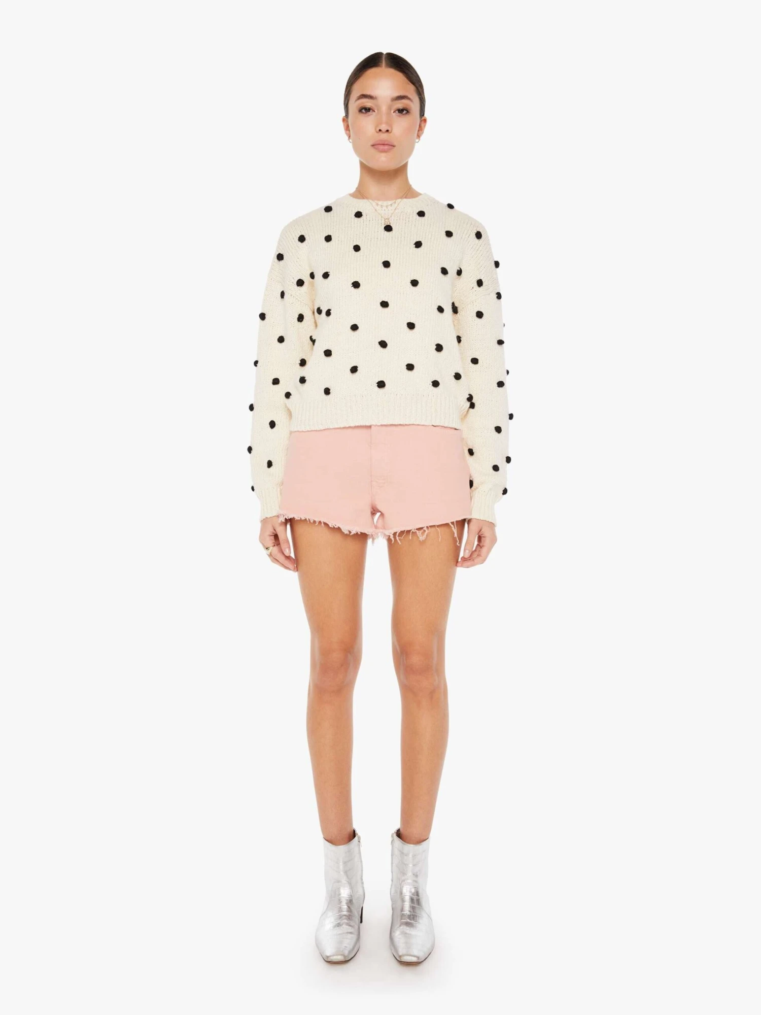Connect the dots. A crewneck sweater with drop shoulders, ribbed hems and a slightly cropped fit. Made from a cotton blend in cream, The Jumper in Dot Your Eyes features black knit bobbles throughout.