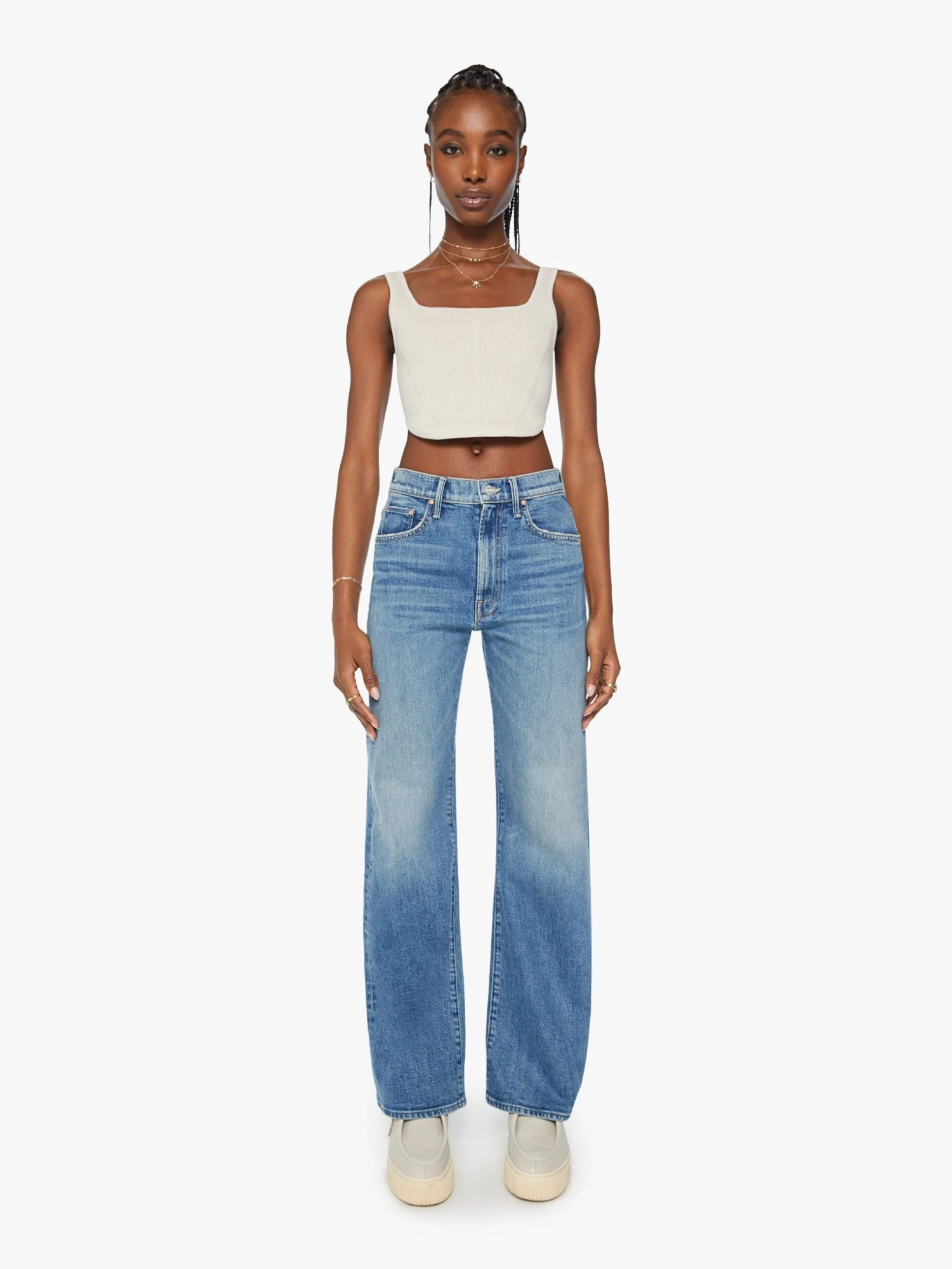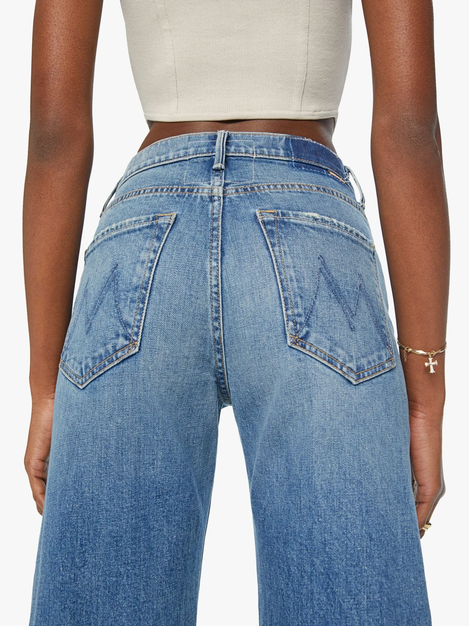 Giddy up. Super wide-leg jeans with a high rise and a long 32-inch inseam. Cut from semi-rigid SUPERIOR denim, Horsin’ Around is a mid-blue wash with whiskering and subtle fading throughout.