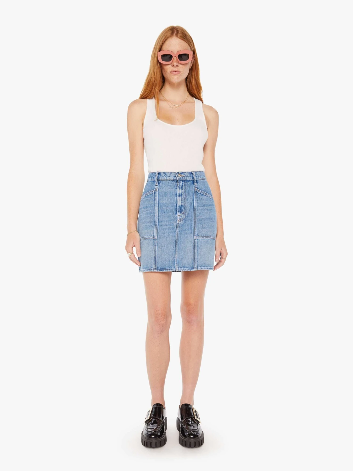 This skirt is rigid and takes time to break in. MOTHER says patience is a virtue.