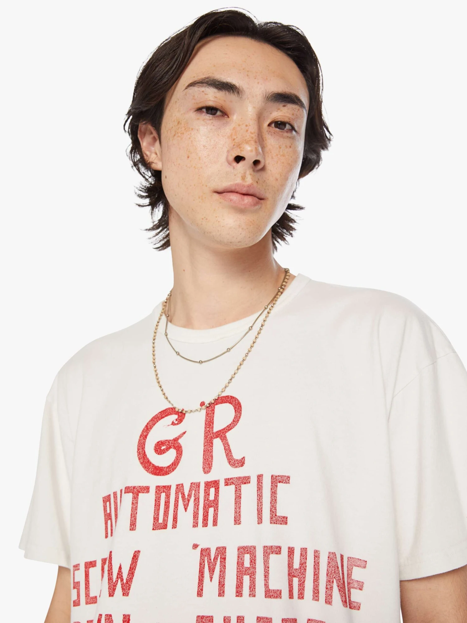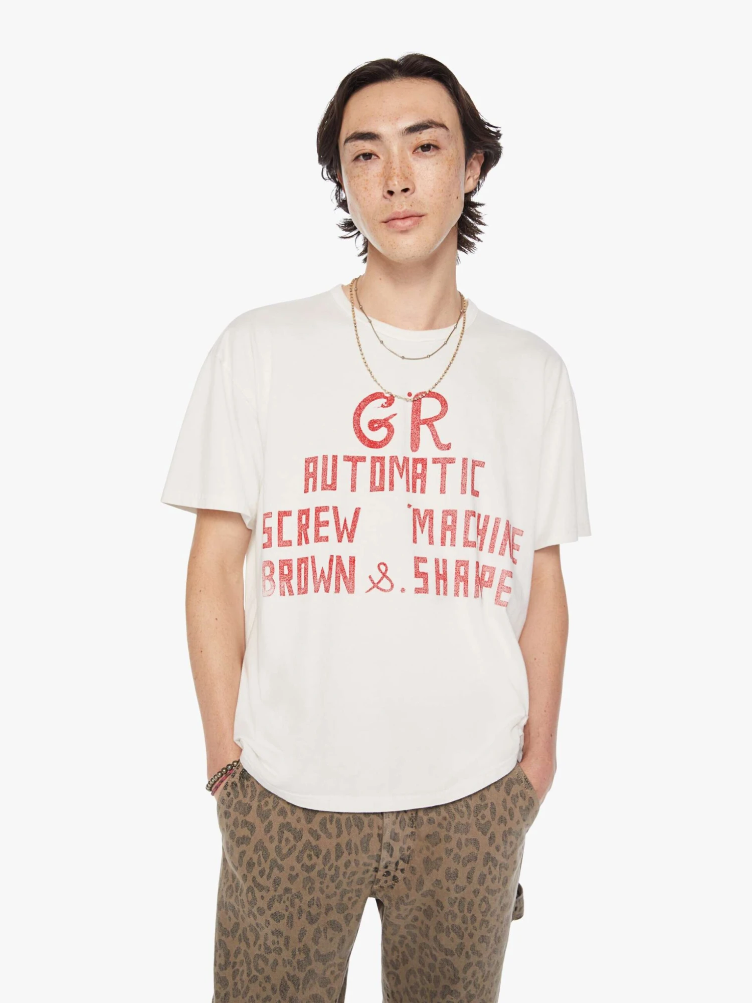 Screw it. An oversized tee with drop shoulders and a loose fit. Made from 100% cotton, the Lowdown in Screw Machine features a faded text graphic in red inspired by a vintage tool advertisement on the front.