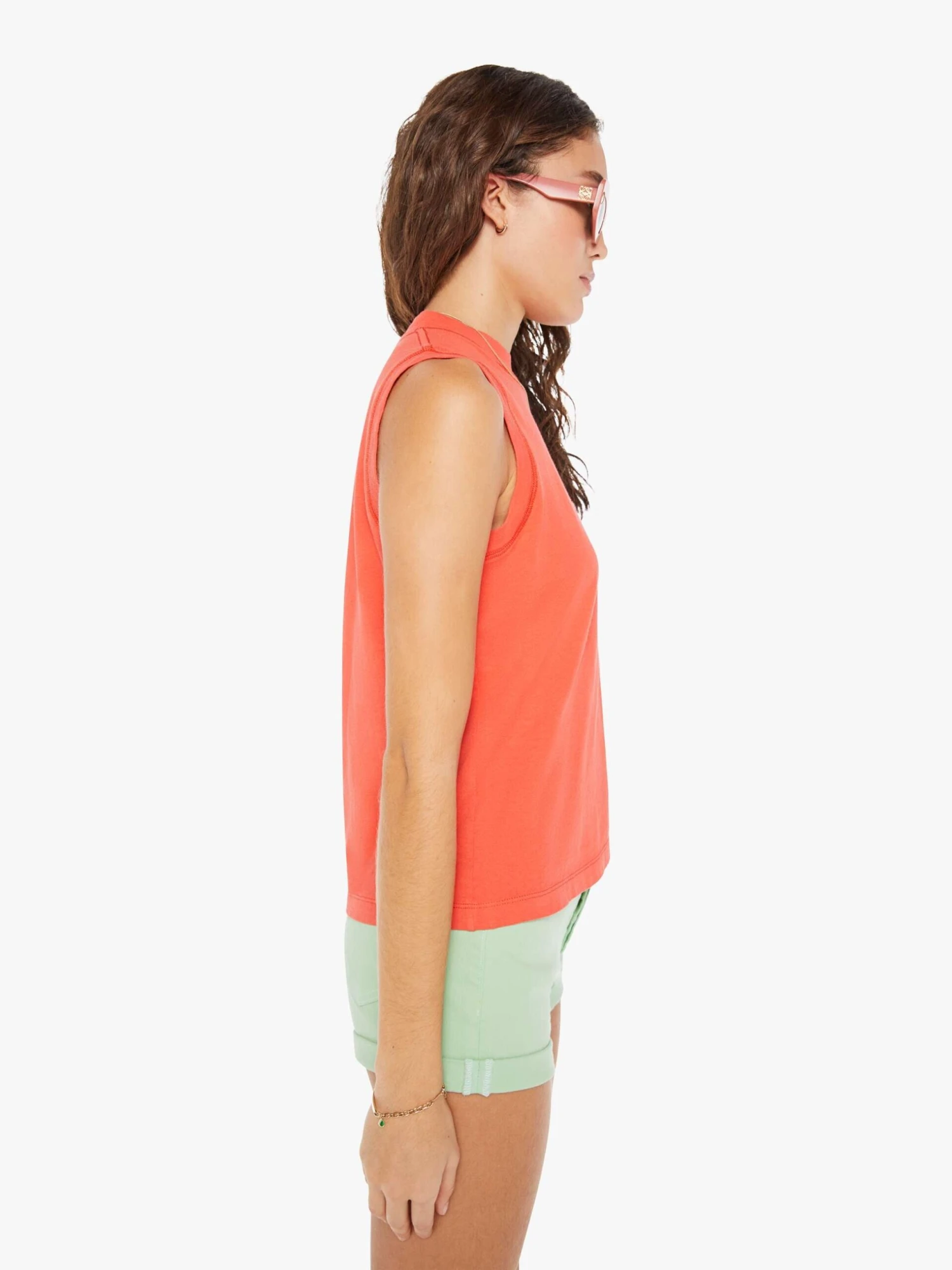 Finders keepers, losers weepers. A crewneck tank from MOTHER’s Lost & Found capsule, a nostalgic collection that evokes the carefree spirit of a summer vacation in the 80s and feels just like a family road trip in that trusty old station wagon. This vintage-inspired tank is designed with a crew neck, patch pocket and relaxed fit. It’s made from 100% cotton in bright coral with tonal contrast stitching.