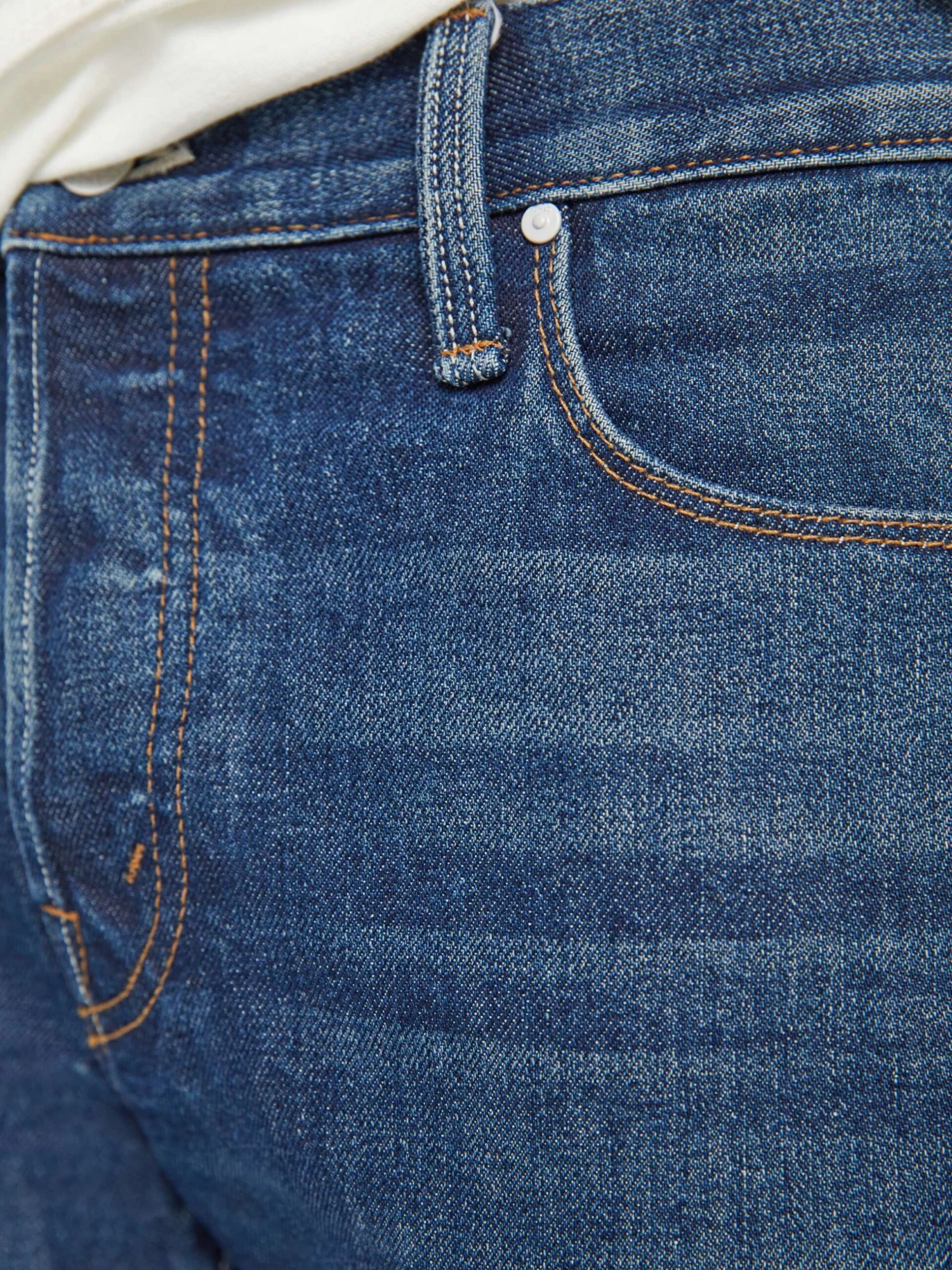 Pump your brakes. A slim-straight leg with a mid rise, 32-inch inseam and a clean hem. Made from denim with a touch of stretch, In The Driver’s Seat is a dark blue wash with whiskering and fading at the knee.