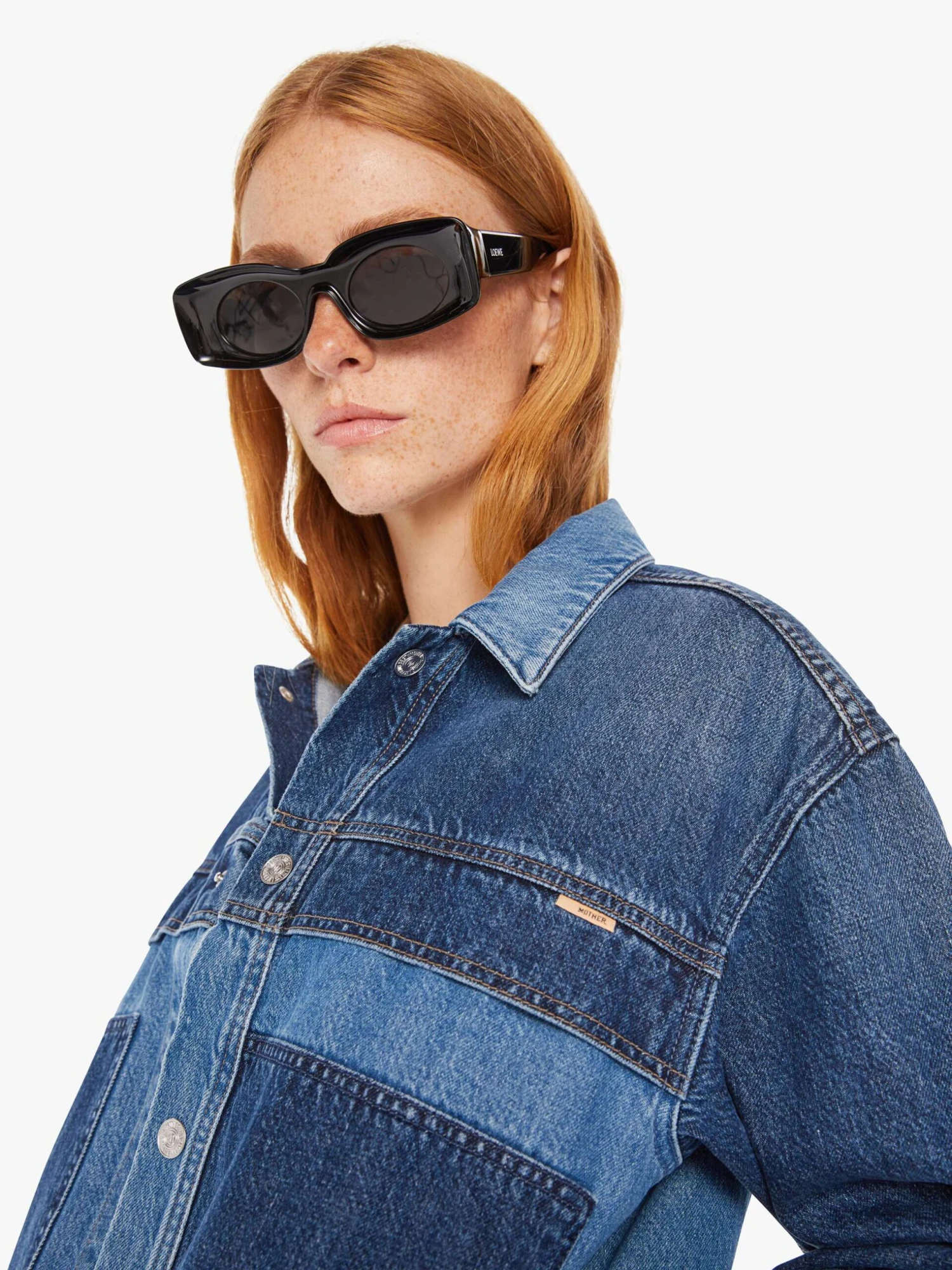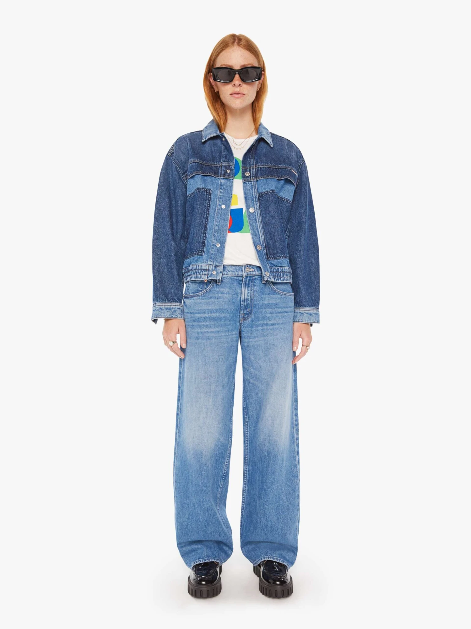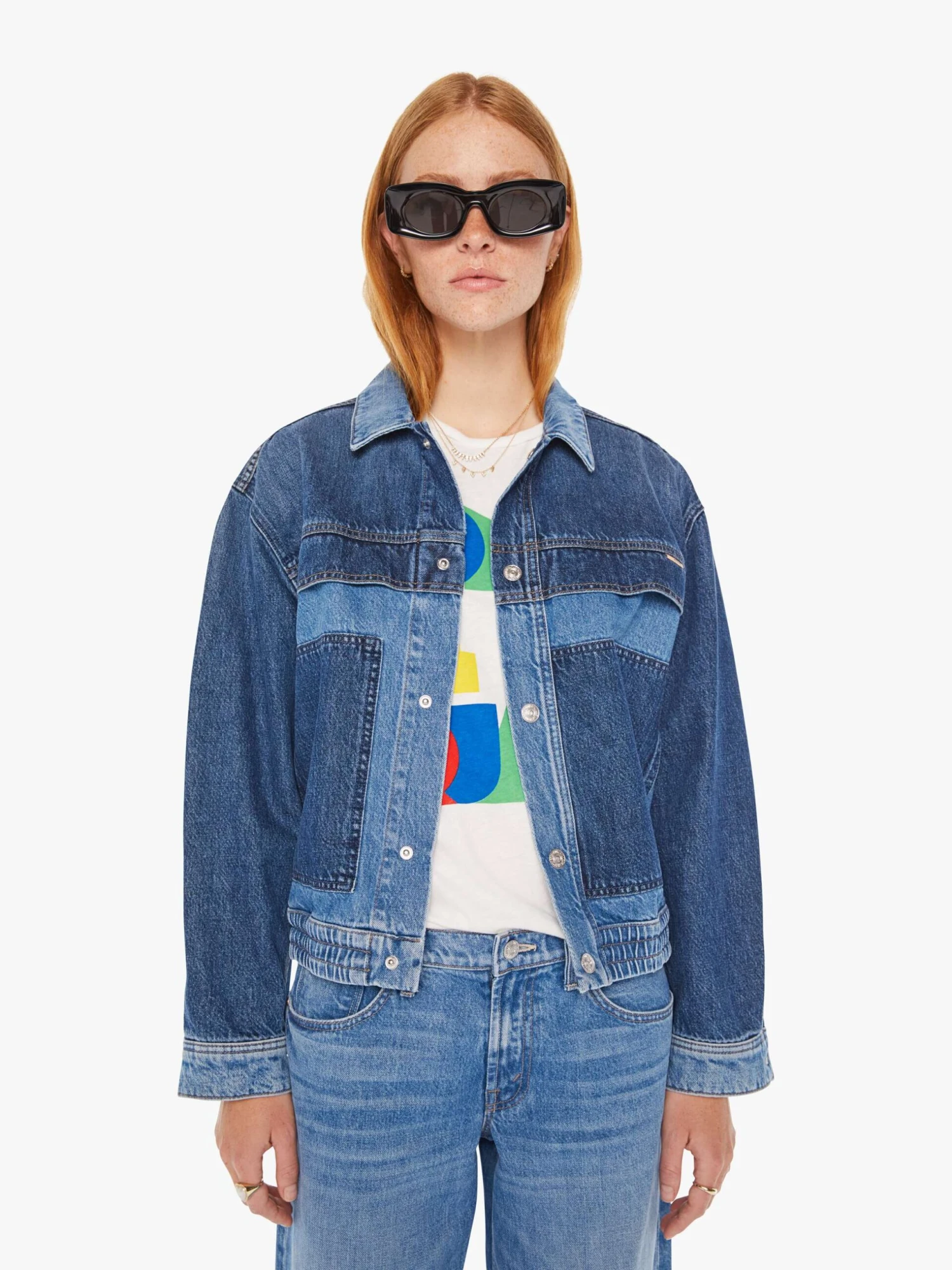 Three’s a crowd. A denim jacket with drop shoulders, patch pockets and an elastic hem at the waist. Made from SUPERIOR 100% cotton, Love Triangle is a mid-blue wash with darker details at the chest, sleeves and pockets.