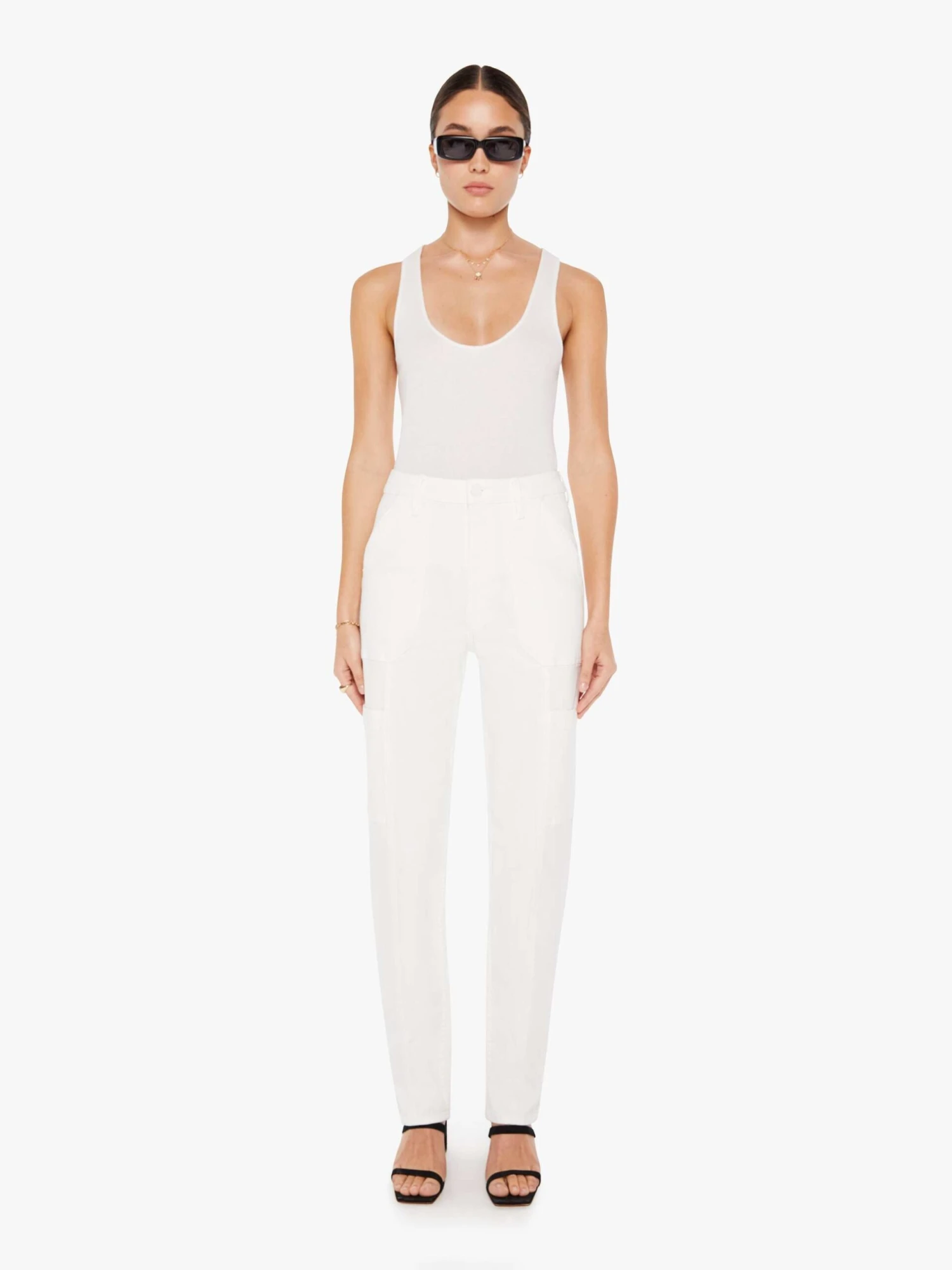 Mirror, mirror. MOTHER’s take on a straight-leg cargo pant features a super high rise, patch pockets on the hips and thighs, seams down the front and a long 31-inch inseam. Made from stretch fabric, Fairest Of Them All is our bestselling white denim.