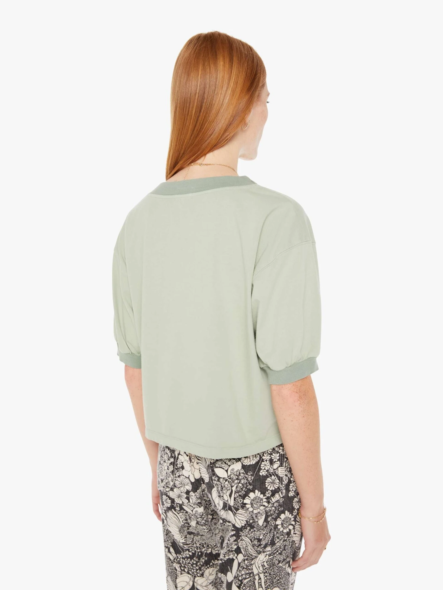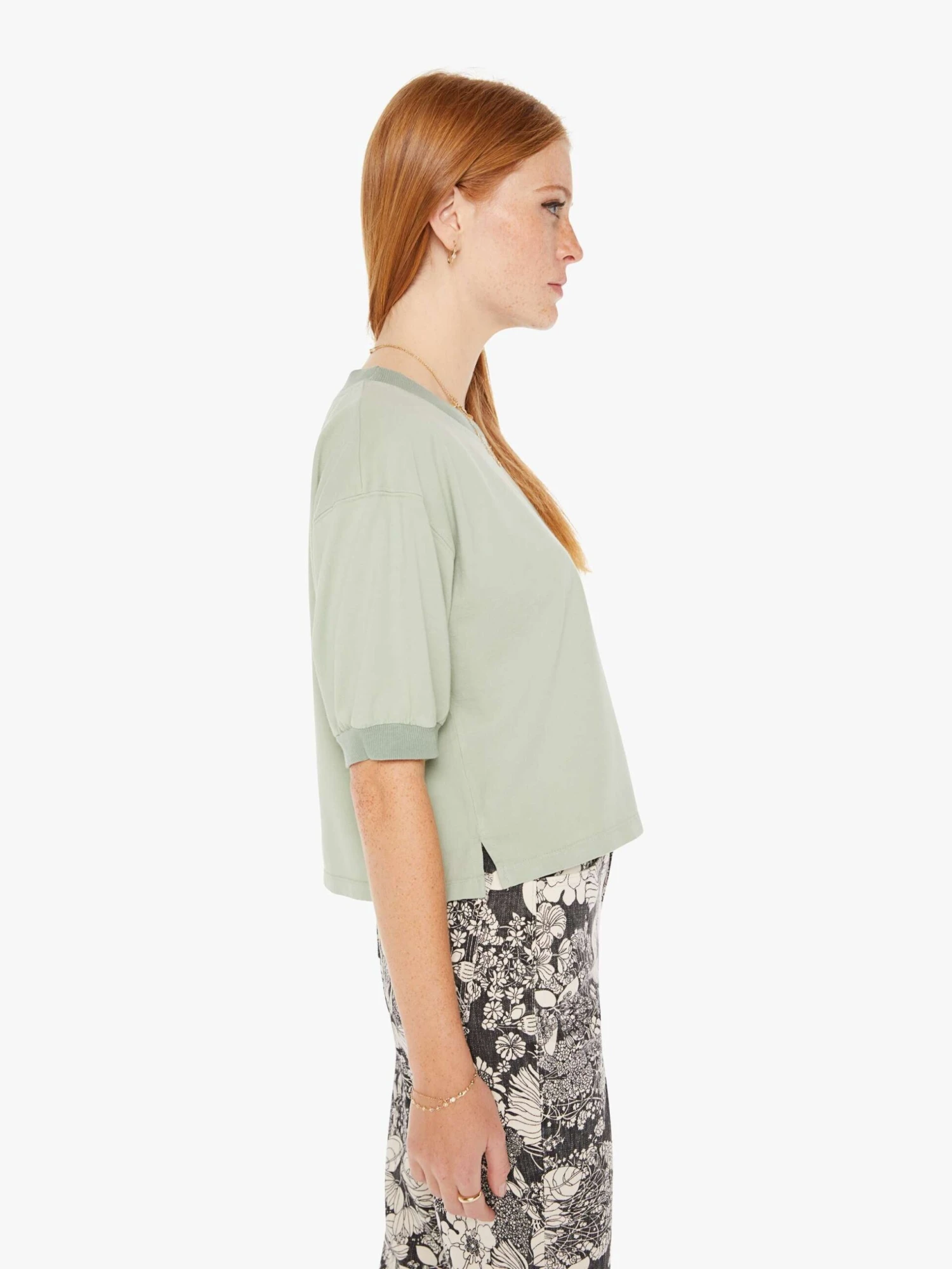 Only at MOTHER. A crewneck tee with drop shoulders, elbow-length puffed sleeves, ribbed hems and a slightly cropped fit. Made from 100% cotton, the tee is designed in a soft sage green.