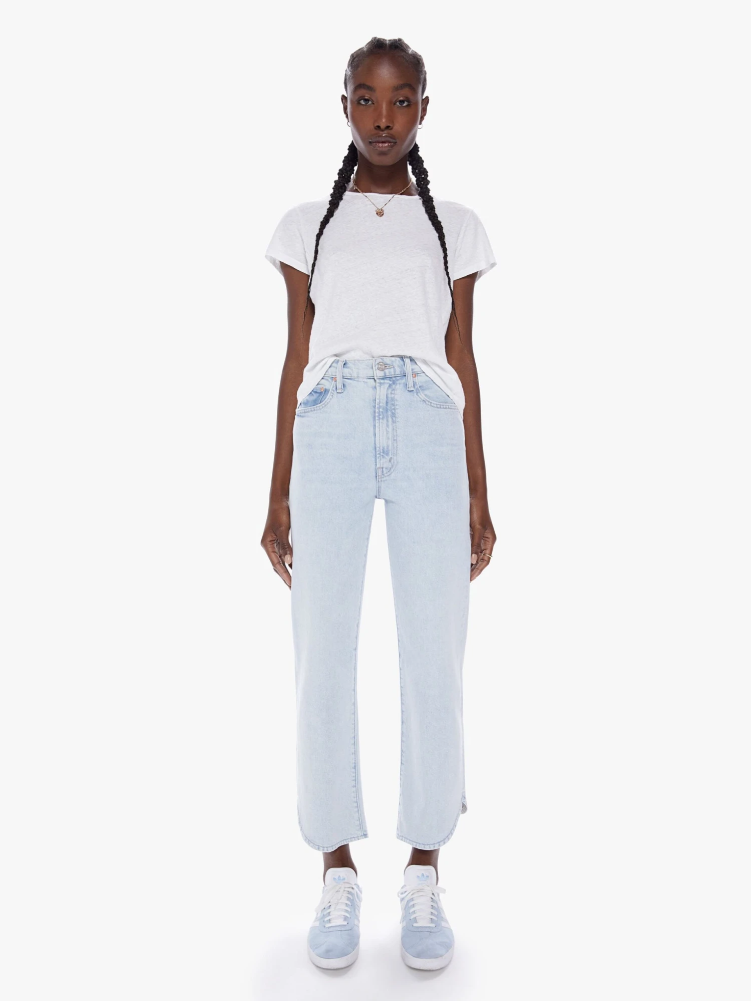 Tell me about it. High-waisted jeans with a wide straight leg, zip fly and an ankle-length inseam with curved side seam. Cut from semi-rigid SUPERIOR denim, I Do Declare is a light-blue wash with subtle fading and whiskering.