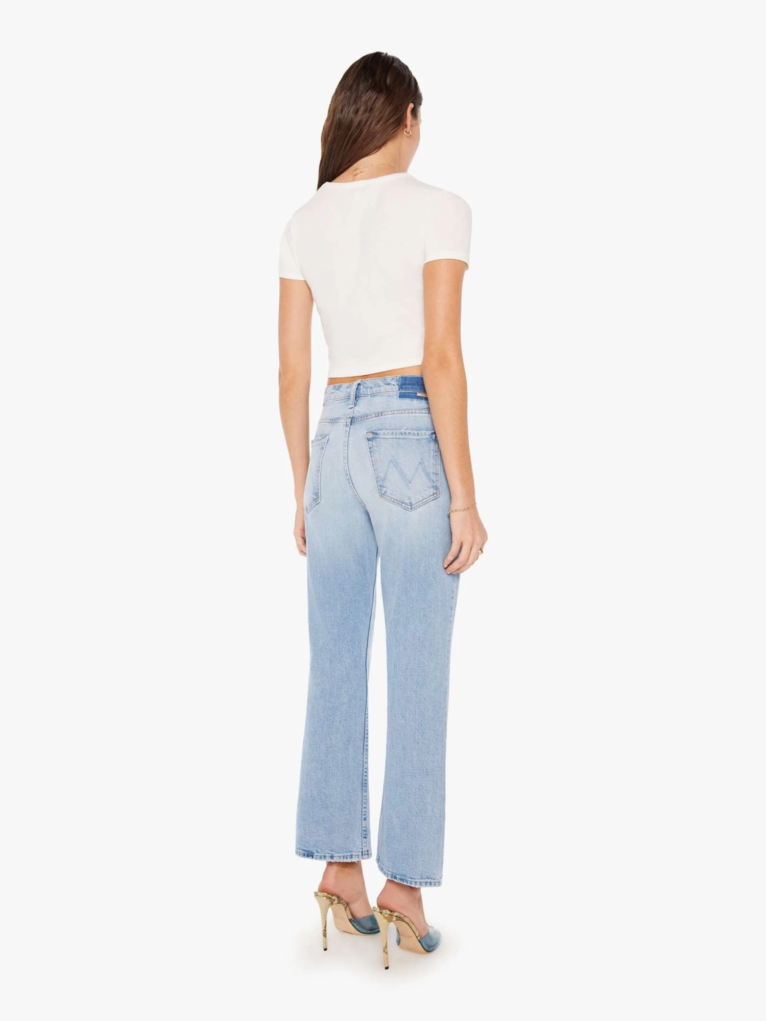 Shape up. Super high-rise jeans with a flared leg, an ankle-length inseam, a slightly dropped crotch and a slouchier fit designed to sit lower on the hips. Cut from semi-rigid SUPERIOR denim, Don’t Be A Square is a light-blue wash with subtle fading, whiskering and distressed details throughout.