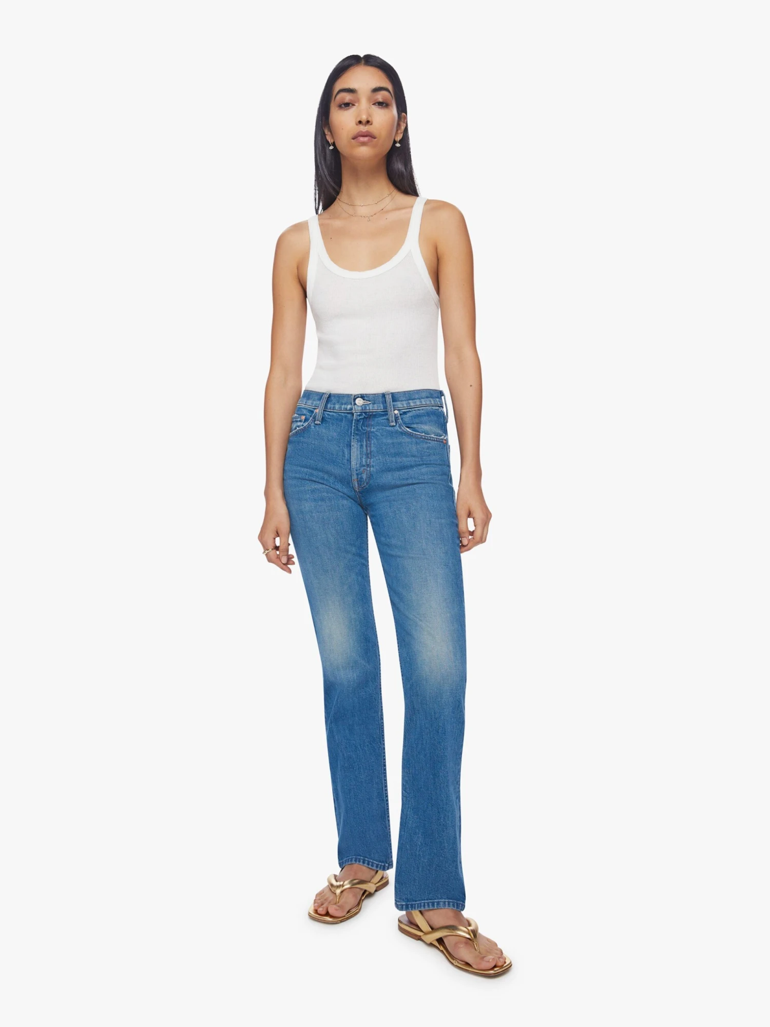 Blast from the past. High-rise jeans with a narrow straight leg and a 31-inch inseam with a clean hem. Cut from semi-rigid SUPERIOR denim, Flashback is a mid-blue wash with subtle fading and whiskering.