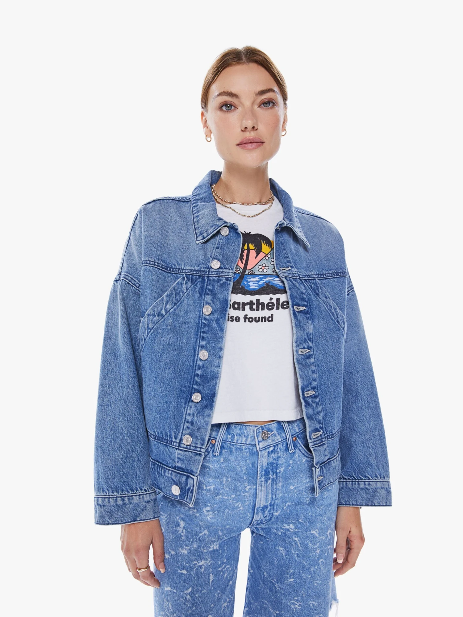 Ship out of luck. MOTHER plays on the classic denim jacket with drop shoulders, slit pockets at the chest, seamed details and a boxy fit. Cut from semi-rigid SUPERIOR denim, Abandon Ship is a mid-blue wash with fading throughout for a worn-in look. It’s going down.