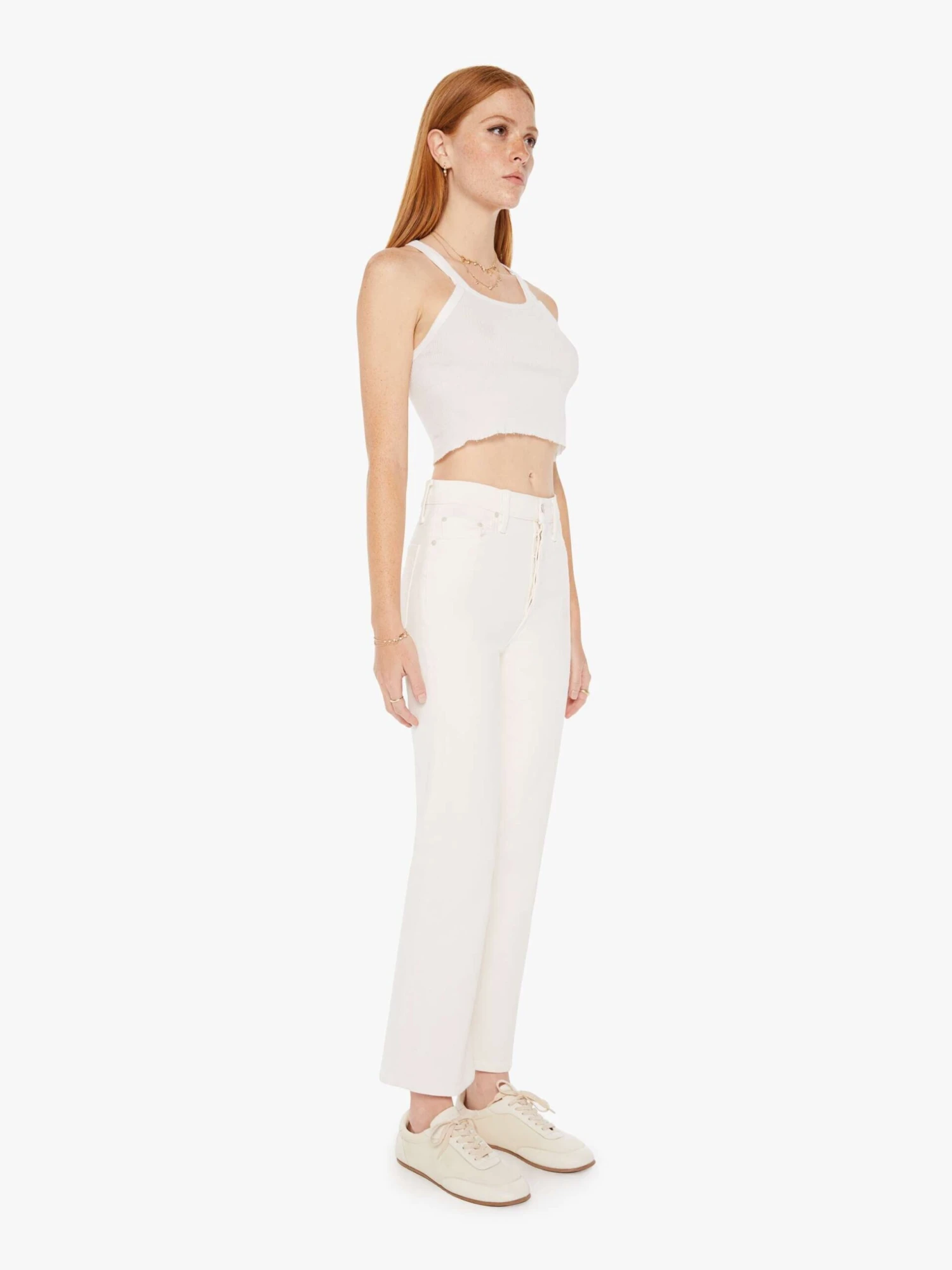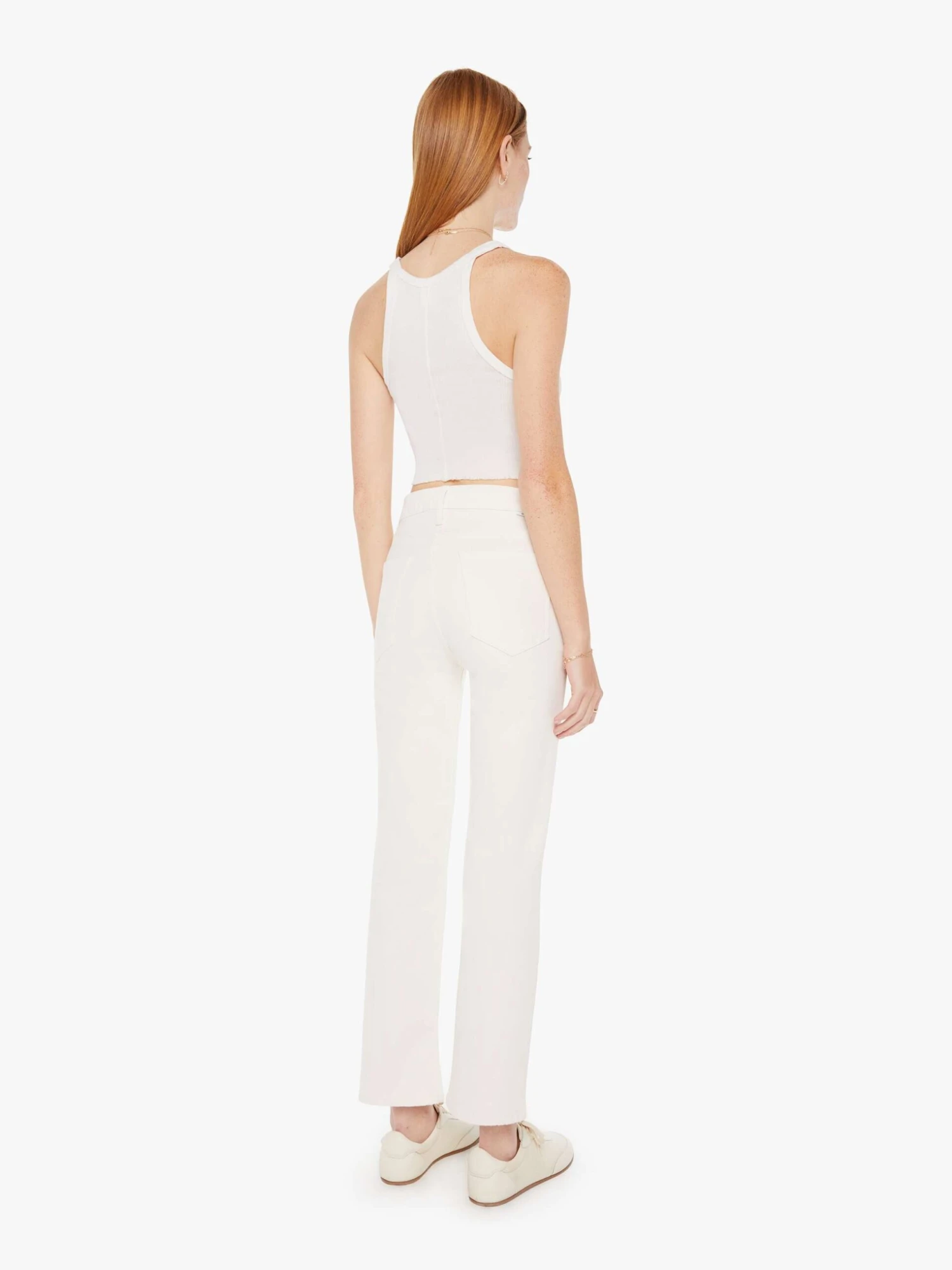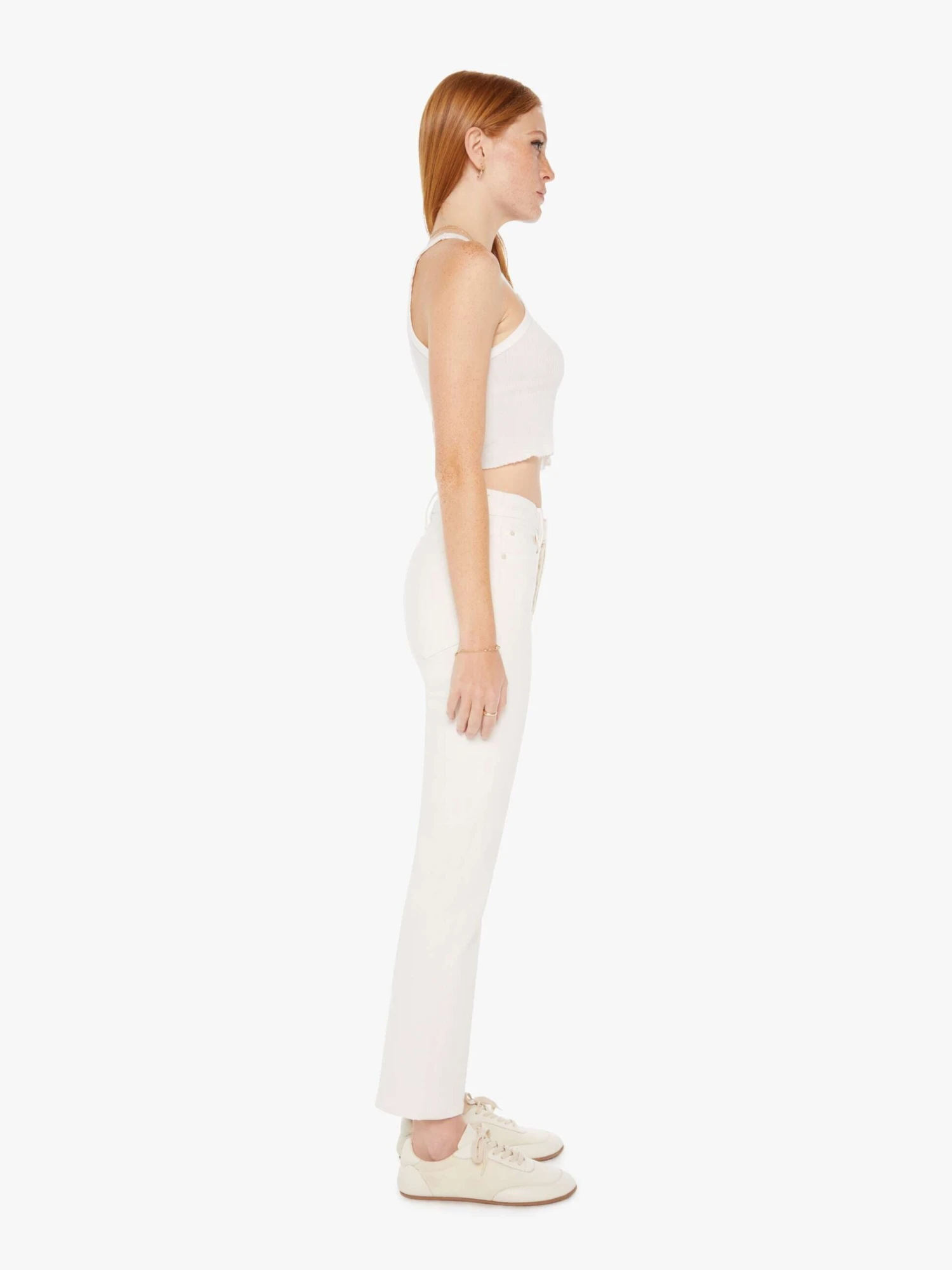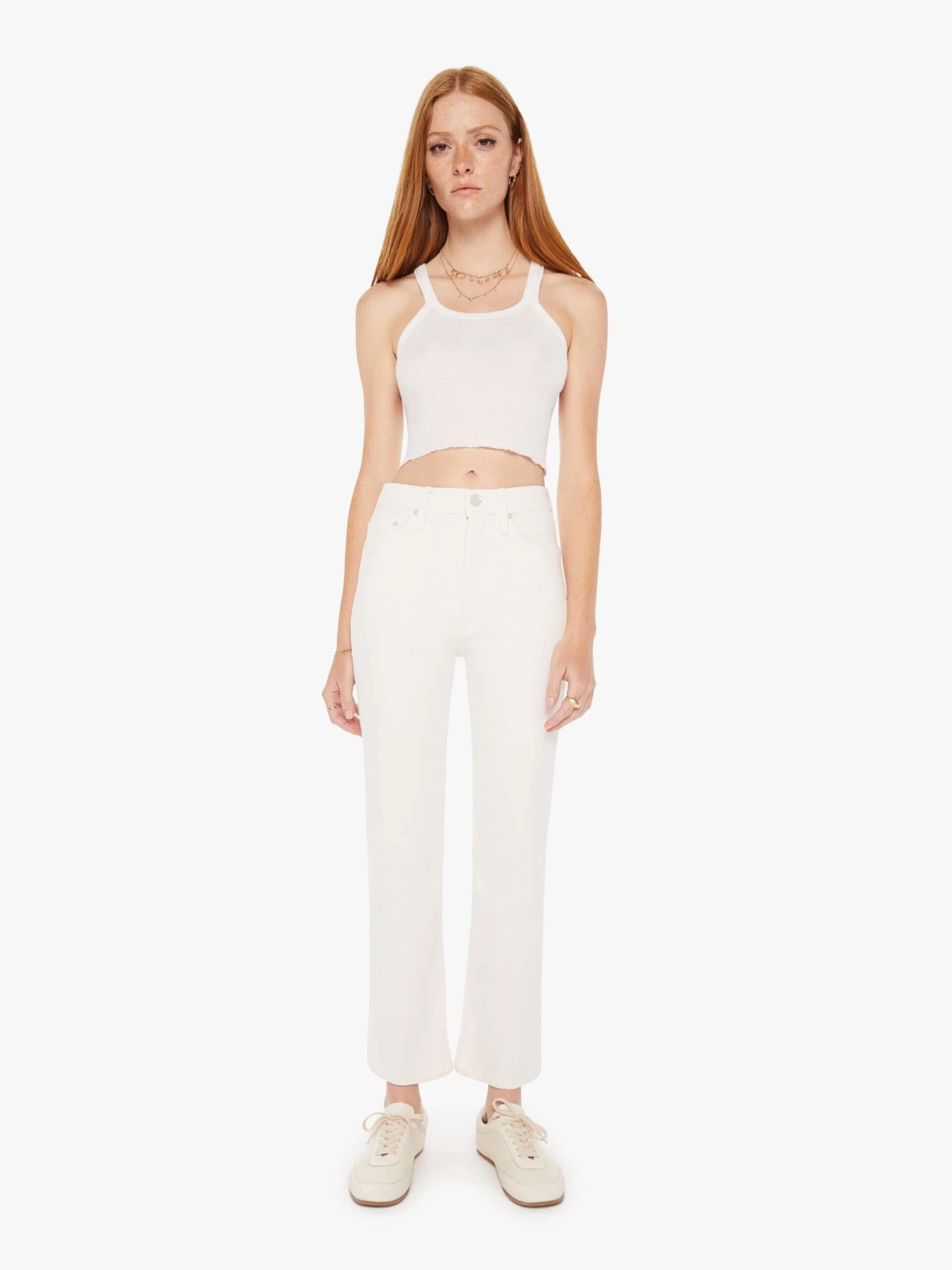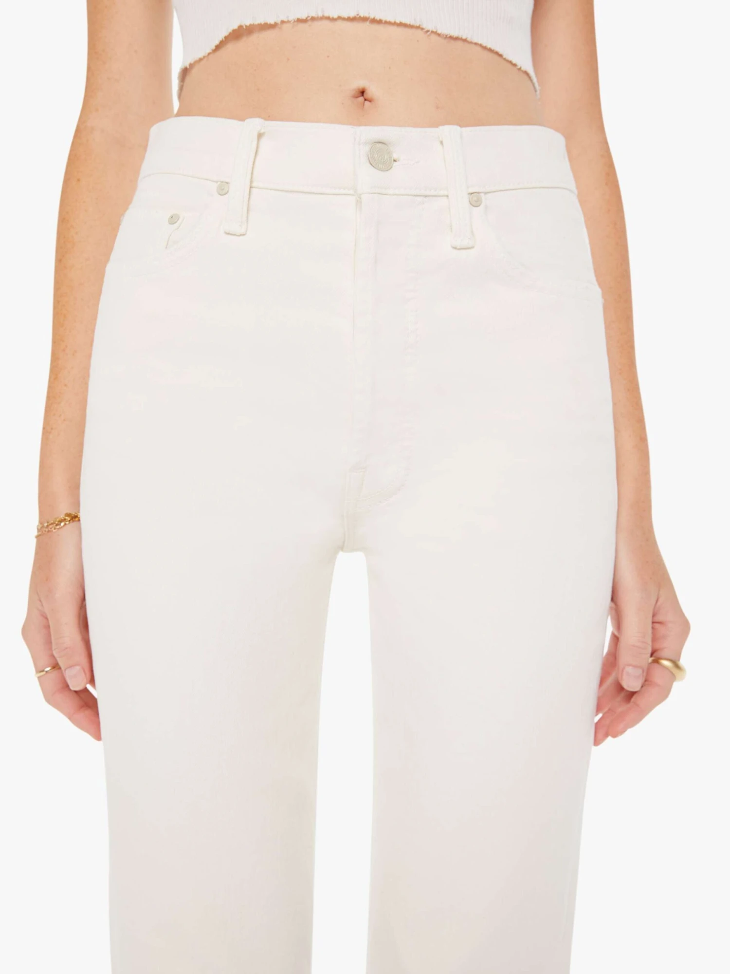 Puff piece. A high-rise flare with a button fly and a clean ankle-length hem. Cut from comfortable stretch fabric, Cream Puffs is off white wash with tonal hardware.