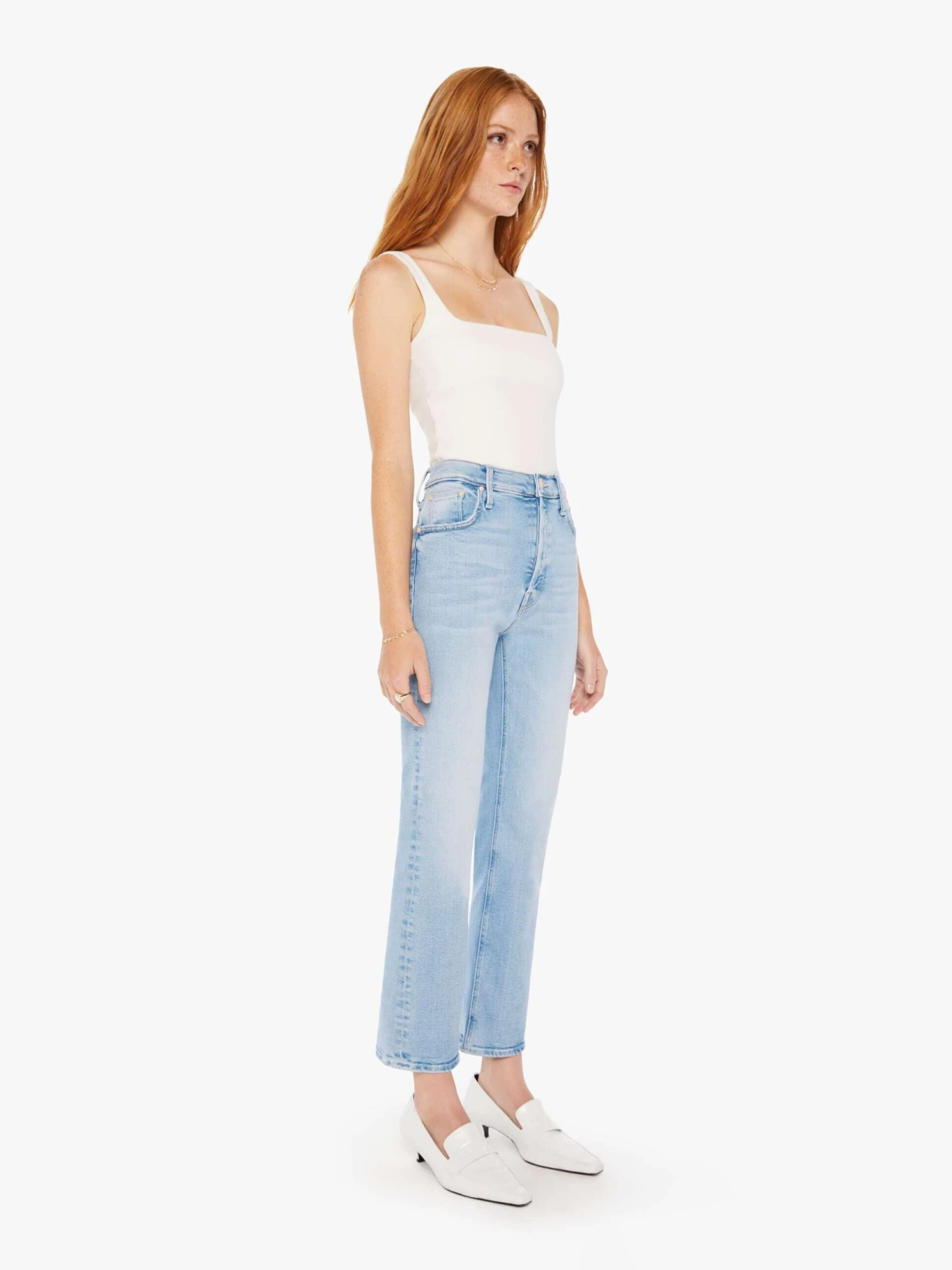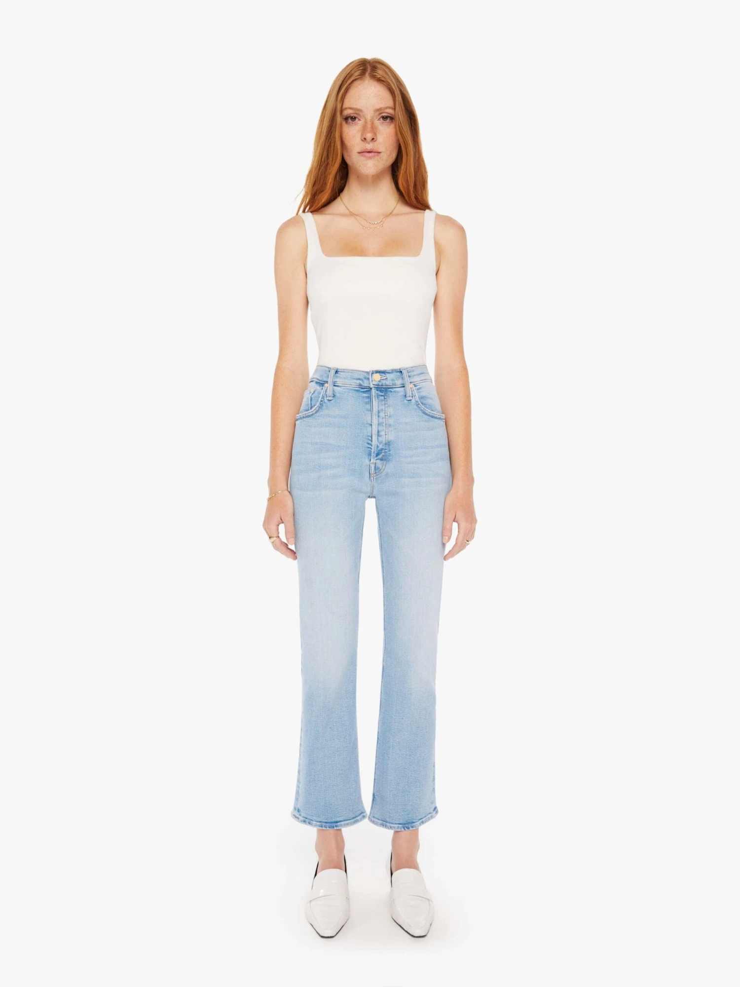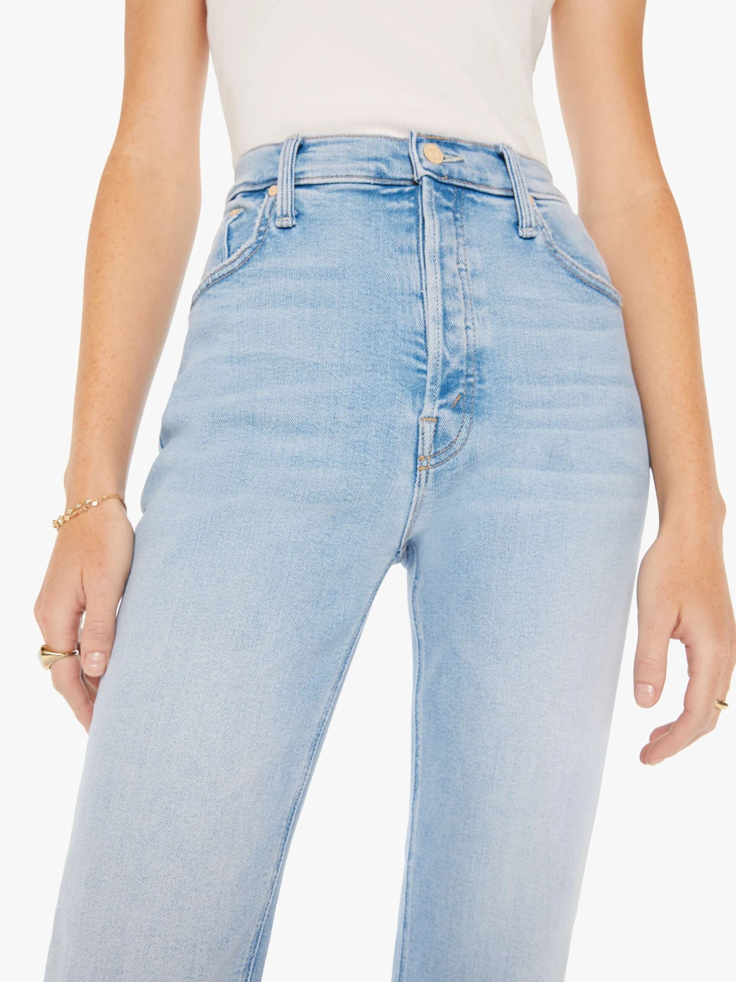 Collector’s piece. A high-rise flare with a button fly and 28.25-inch inseam with a clean hem. Cut from stretch denim, Limited Edition is a bright light blue wash with whiskering and fading throughout. The rarest of them all.