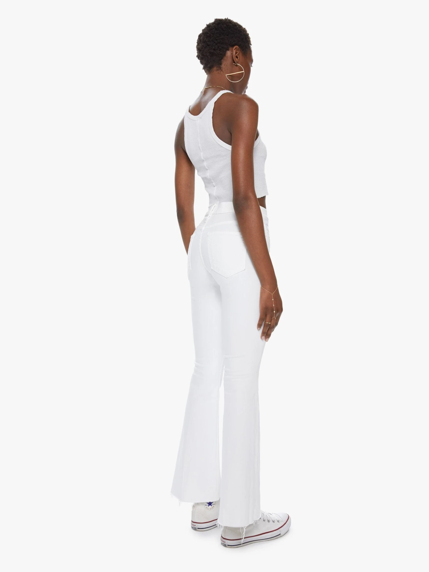 Mirror, mirror. Cult-favorite flare jeans with a mid rise, 31-inch inseam, raw cropped hem and effortless vibe. Made from stretch fabric, Fairest Of Them All is our bestselling white denim.